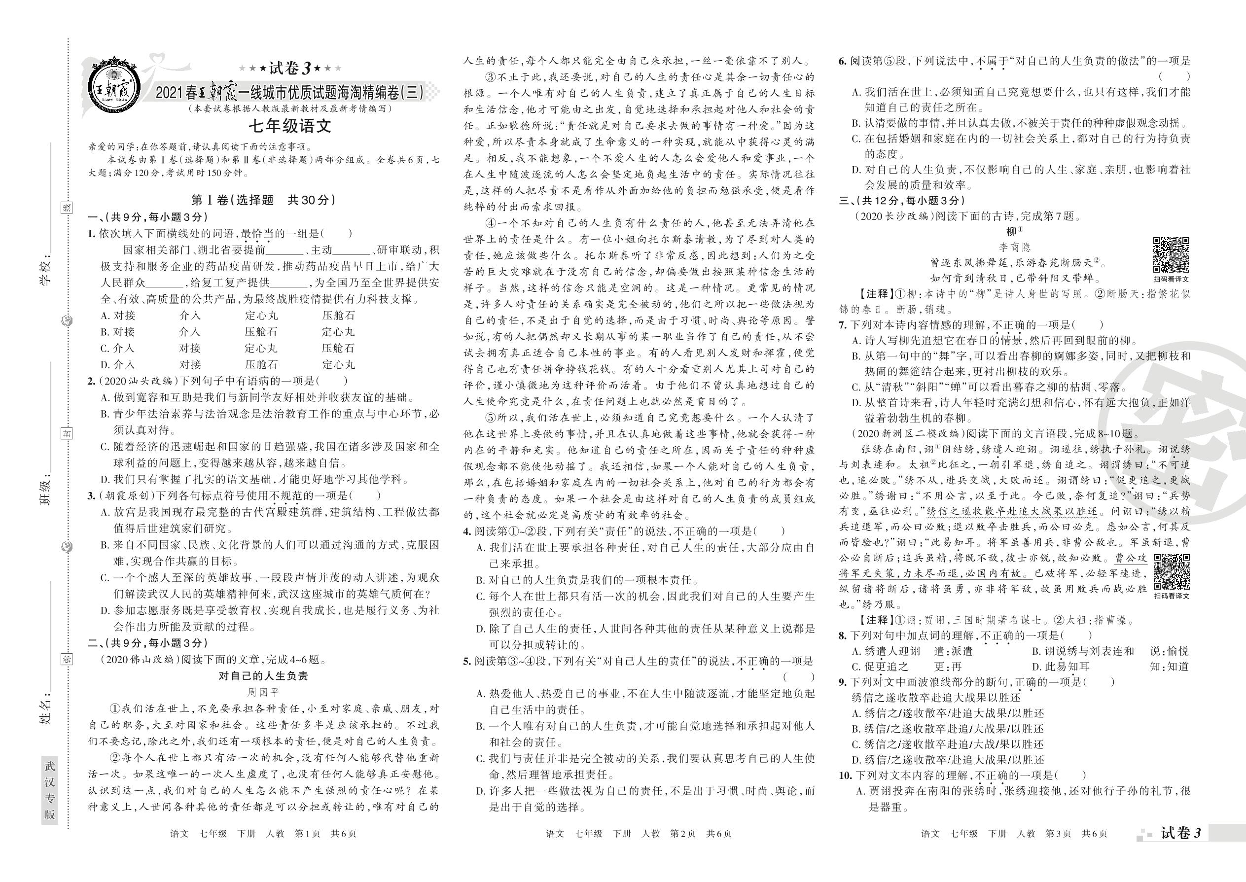 王朝霞海淘期末精编卷七年级下册语文(人教版)_R2108023903【3】