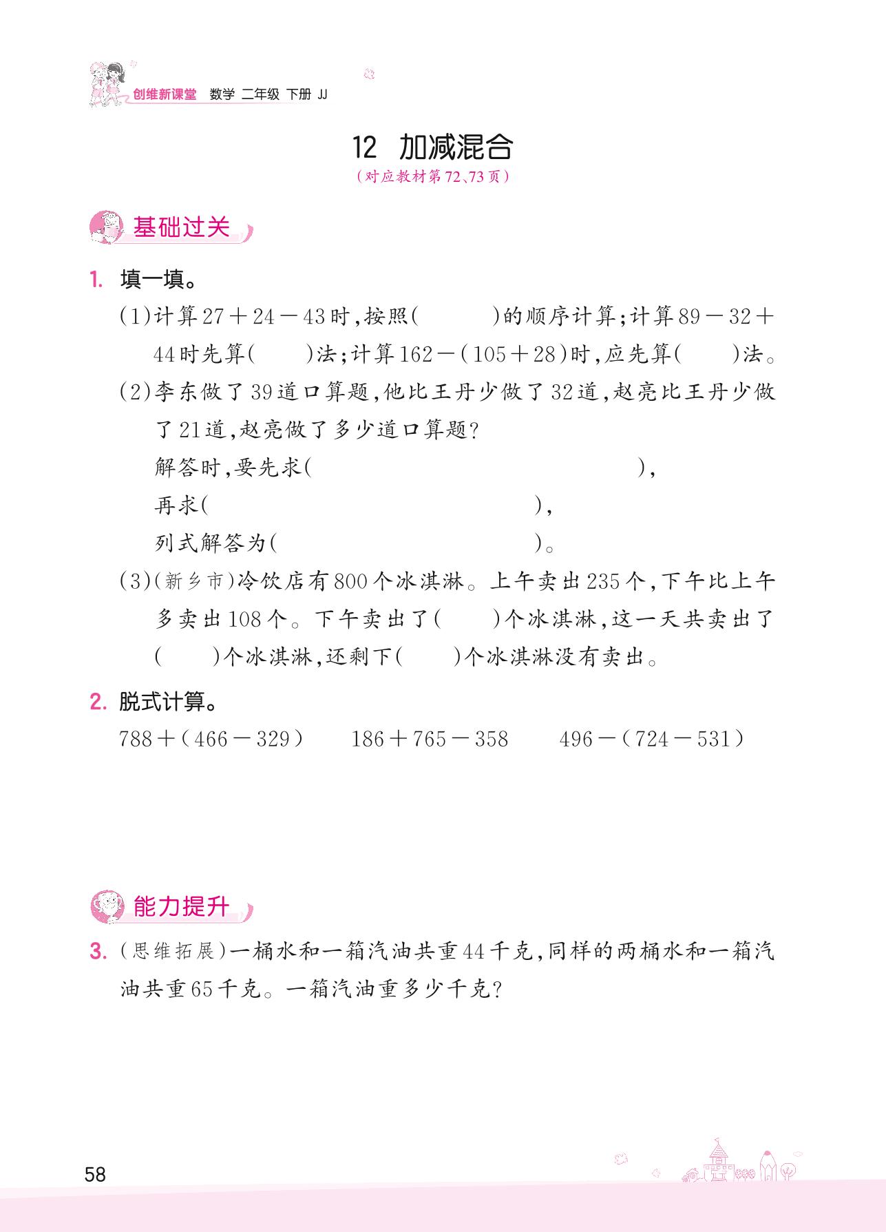 2022下册二年级数学冀教版 六 三位数加减三位数——12 加减混合