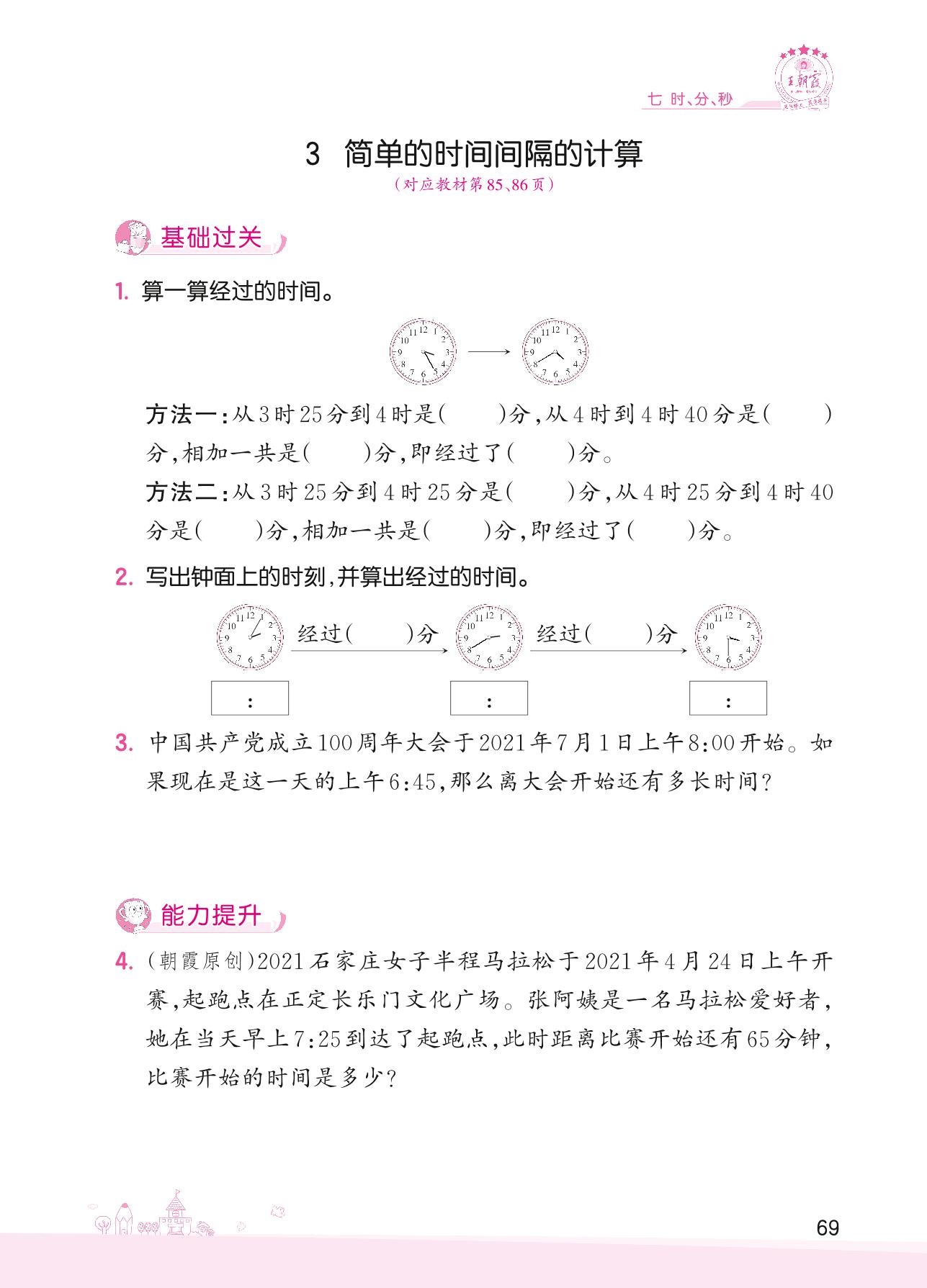 2022下册二年级数学冀教版 七 时、分、秒——3 简单的时间间隔的计算