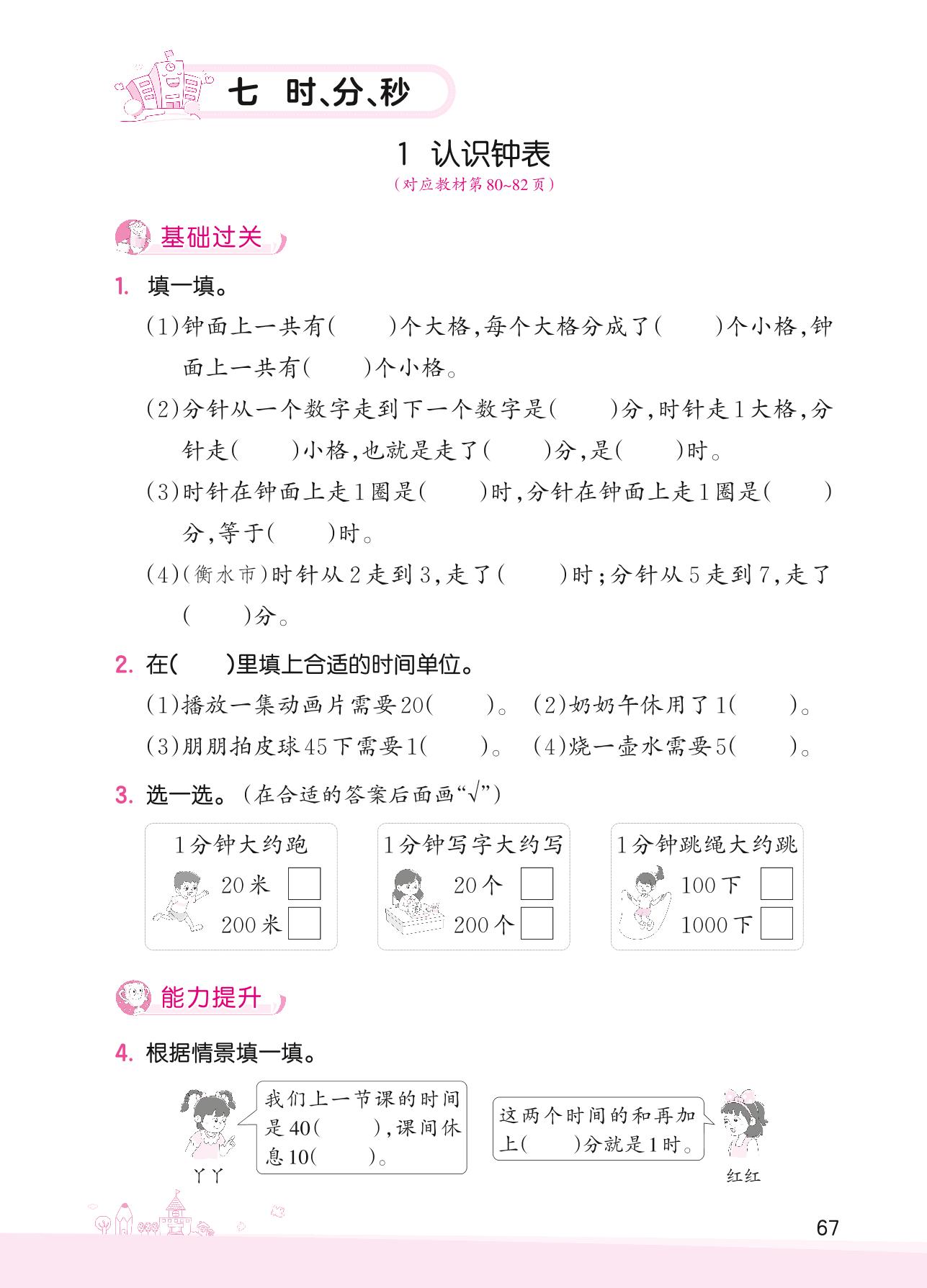 2022下册二年级数学冀教版 七 时、分、秒——1 认识钟表