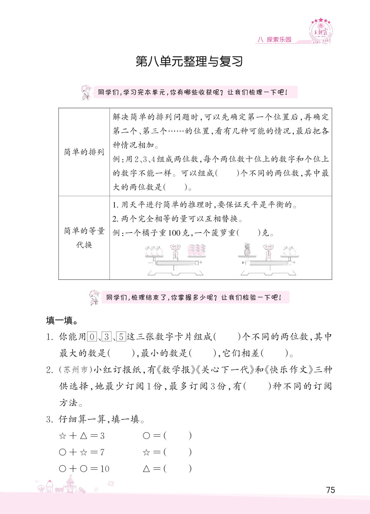 2022下册二年级数学冀教版 八 探索乐园——第八单元整理与复习