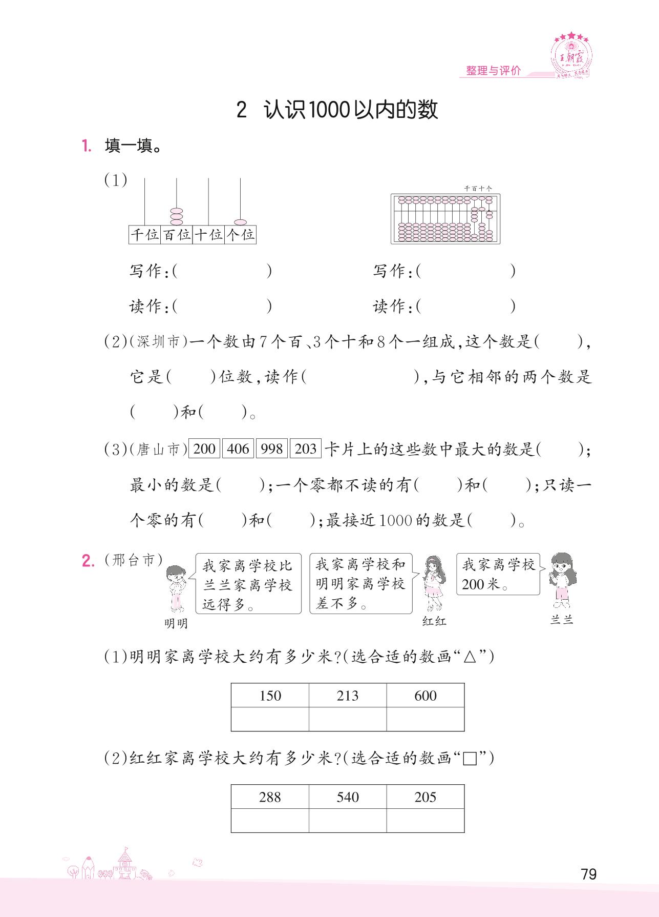 2022下册二年级数学冀教版 整理与评价——2 认识1000以内的数