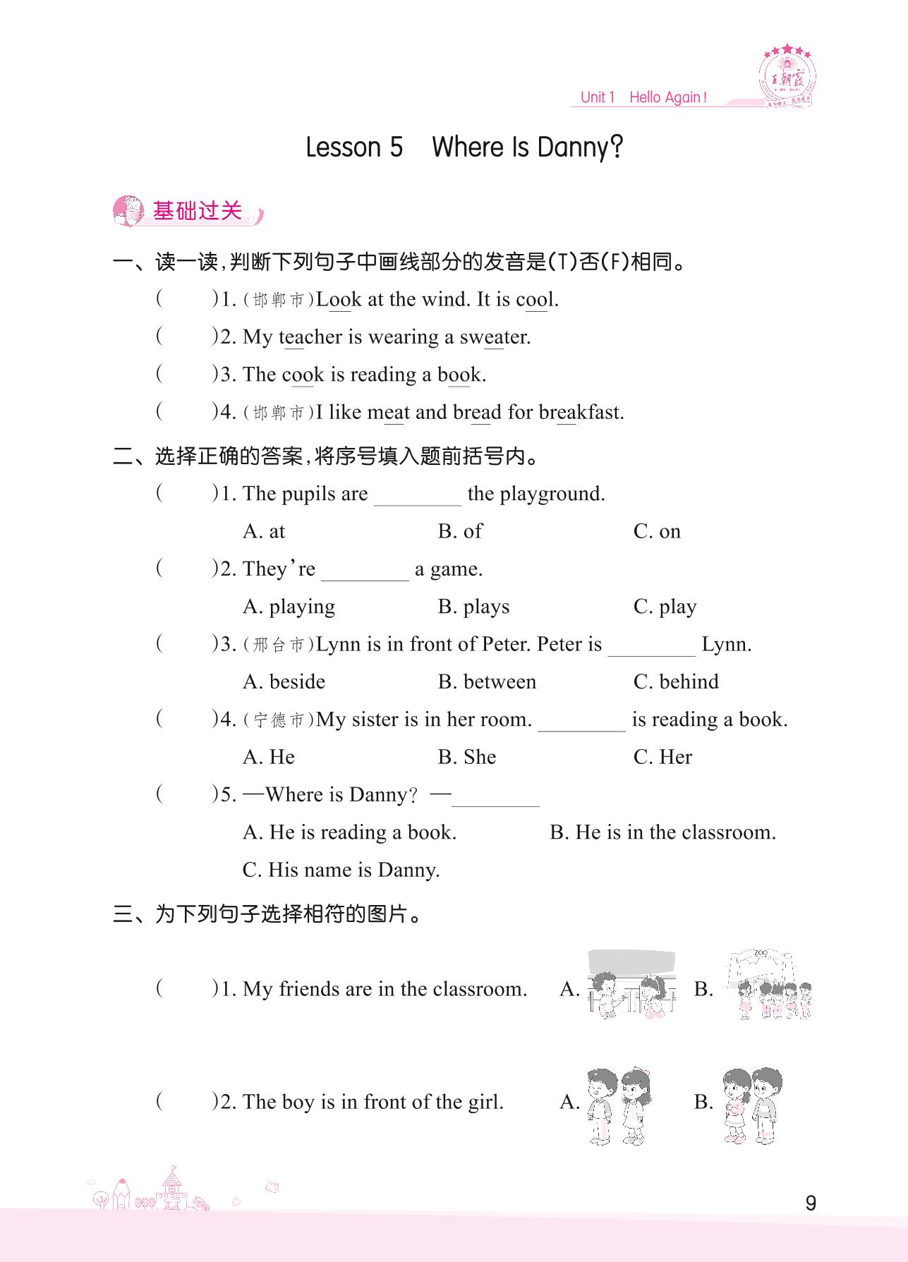 2022下册四年级英语冀教版 Unit 1—Lesson 5 Where Is Danny?