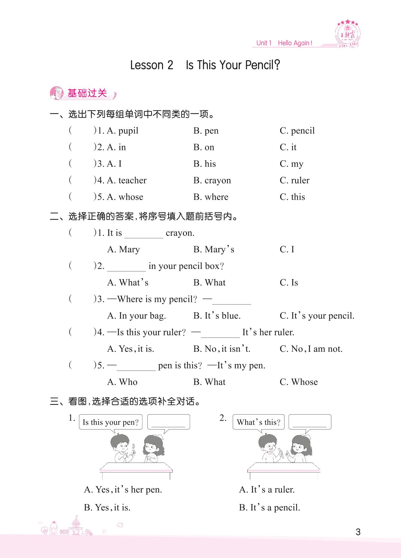 2022下册四年级英语冀教版 Unit 1—Lesson 2 Is This Your Pencil?