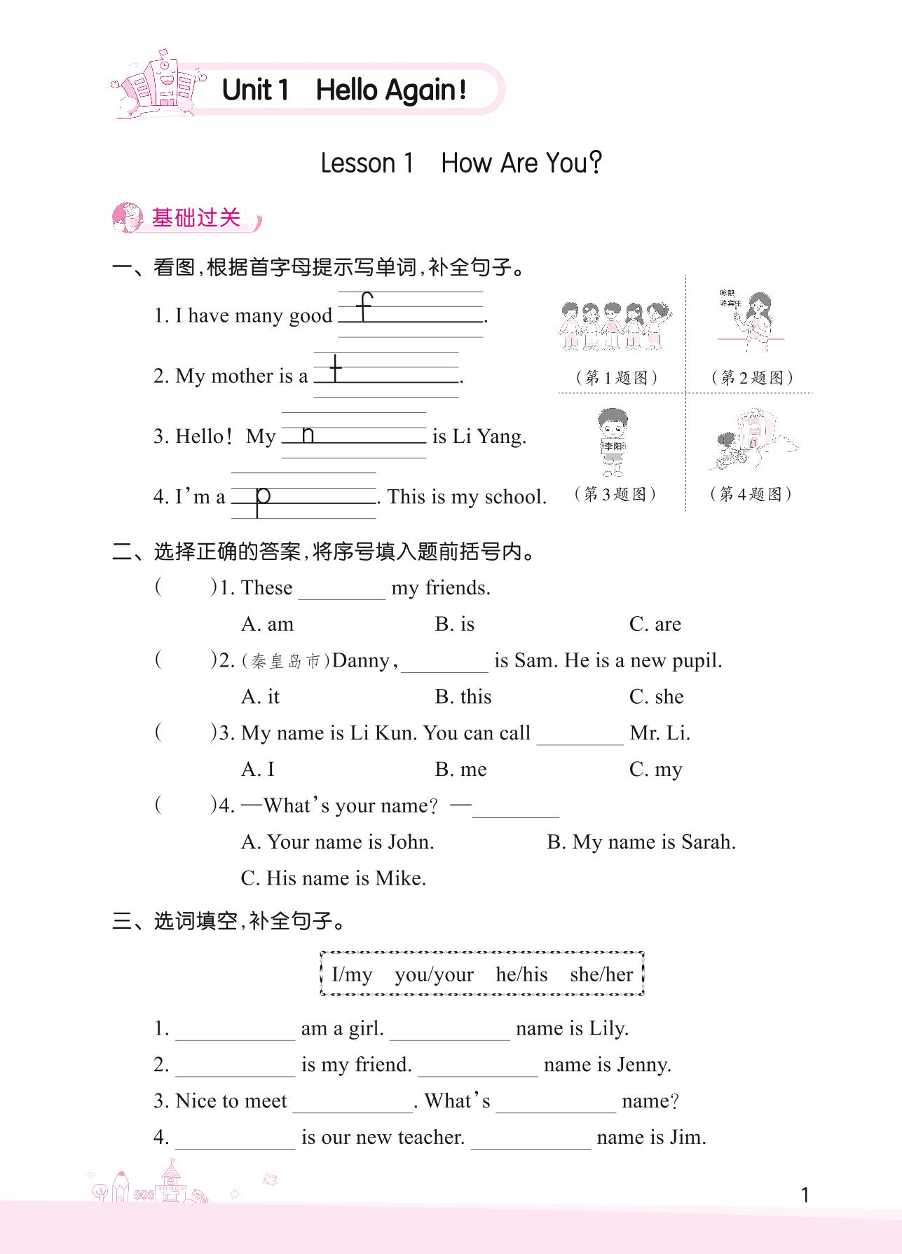 2022下册四年级英语冀教版 Unit 1—Lesson 1 How Are You?
