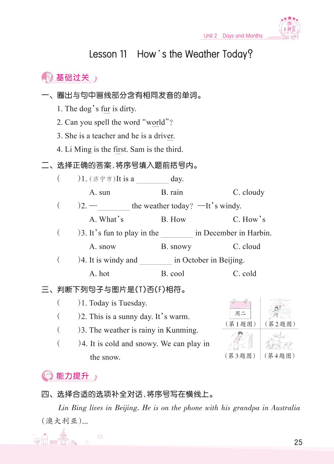 2022下册四年级英语冀教版 Unit 2—Lesson 11 How’s the Weather Today?