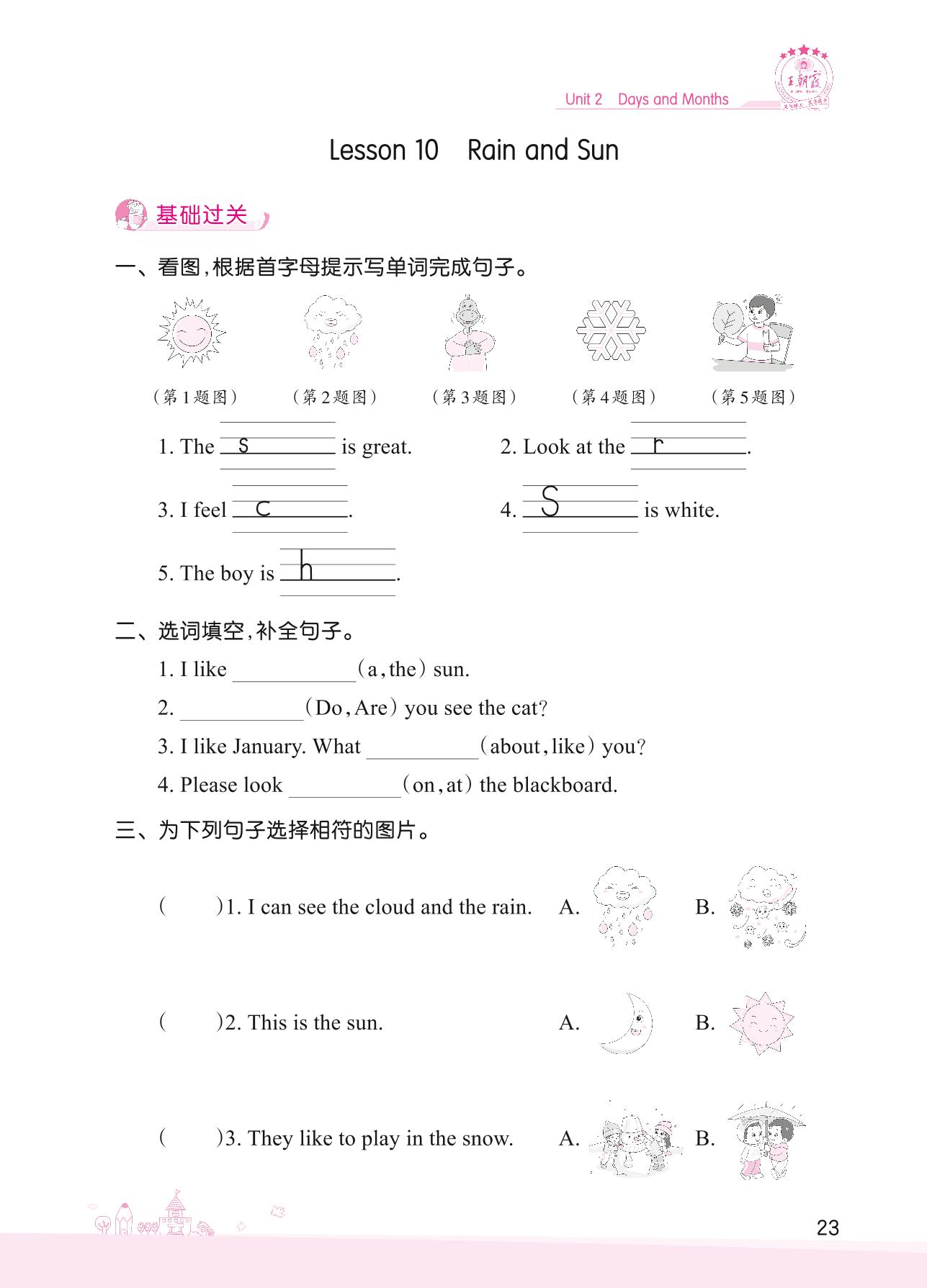2022下册四年级英语冀教版 Unit 2—Lesson 10 Rain and Sun