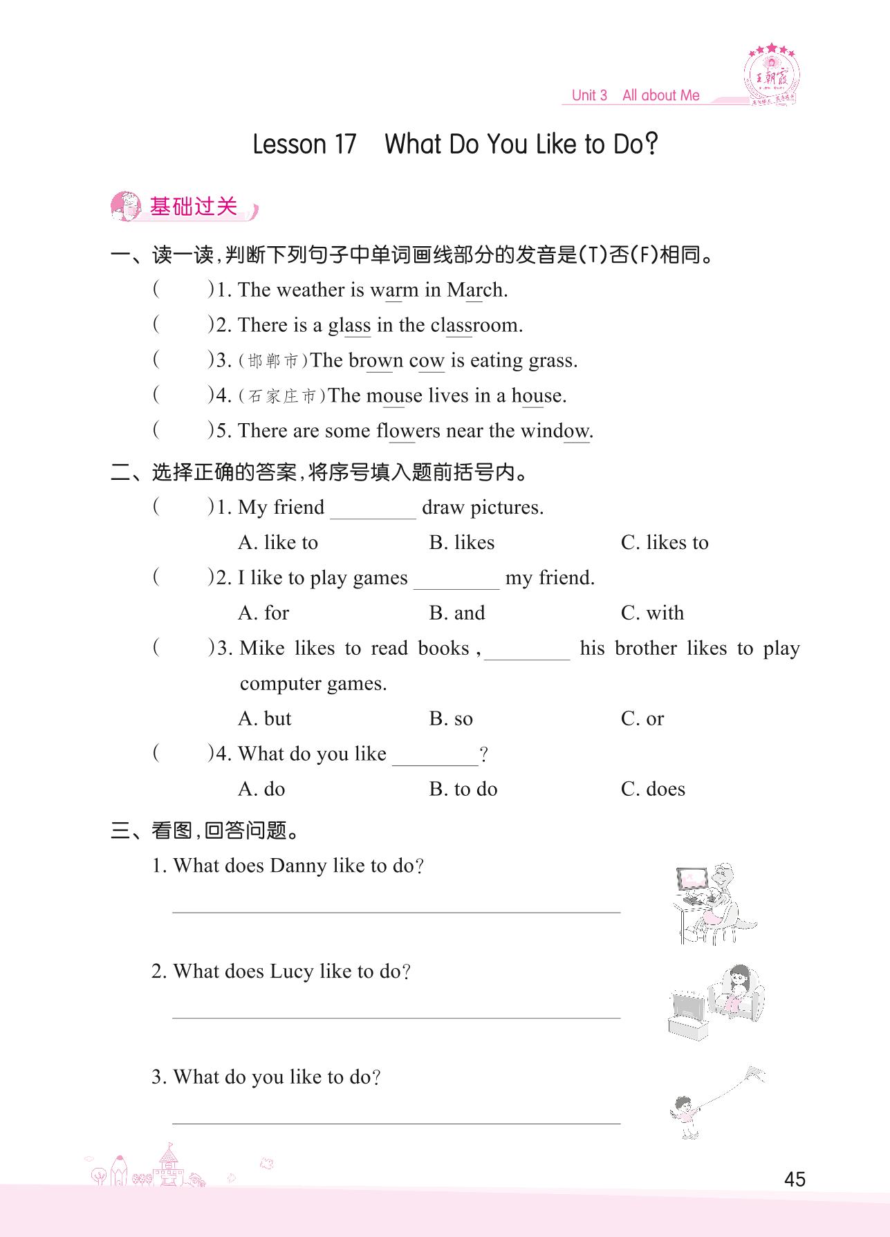 2022下册四年级英语冀教版 Unit 3—Lesson 17 What Do You Like to Do?