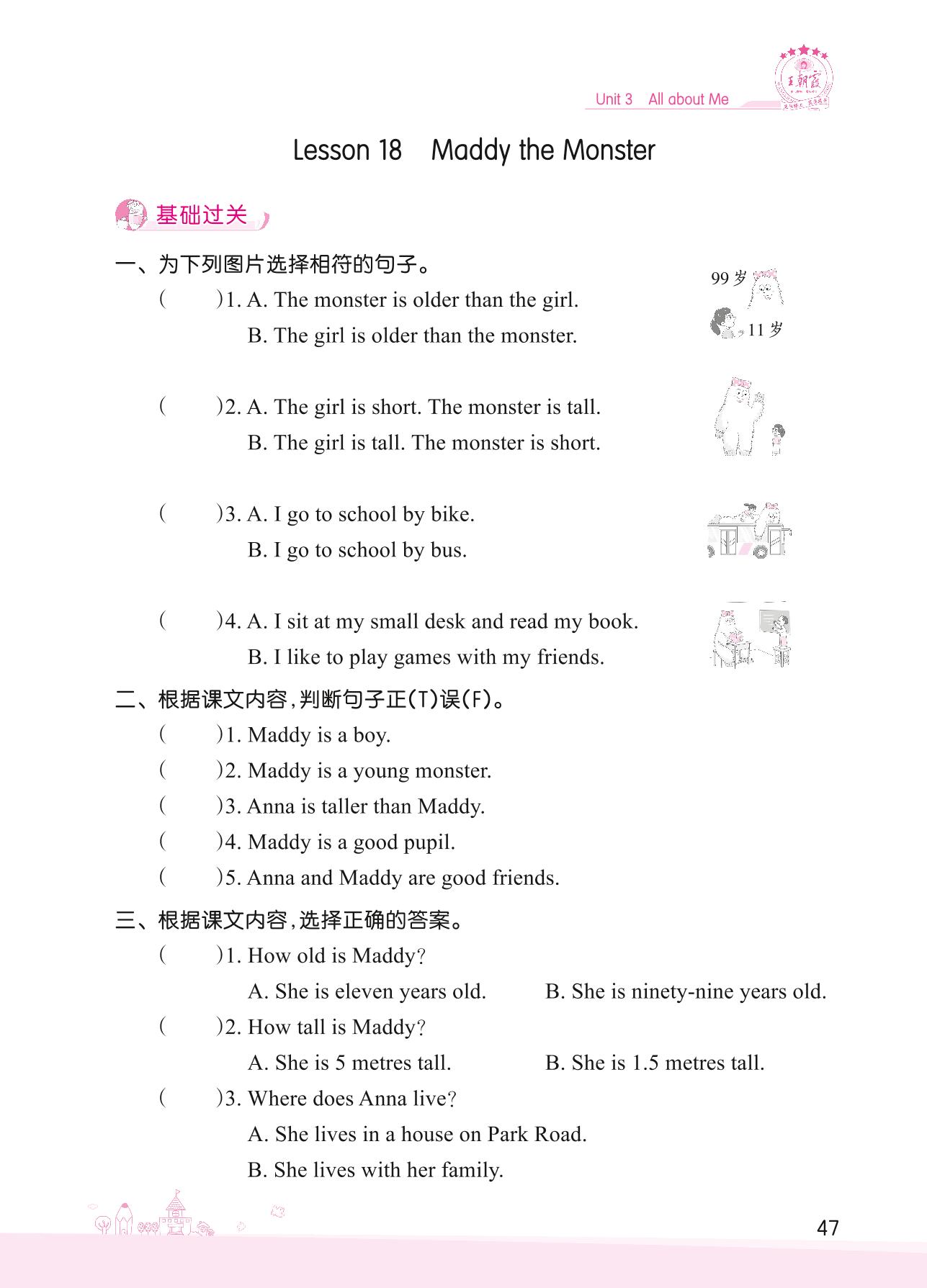 2022下册四年级英语冀教版 Unit 3—Lesson 18 Maddy the Monster