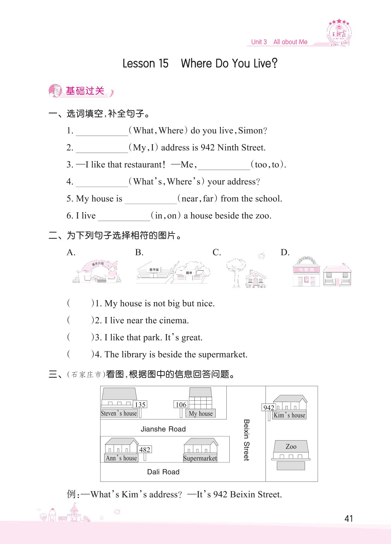 2022下册四年级英语冀教版 Unit 3—Lesson 15 Where Do You Live?
