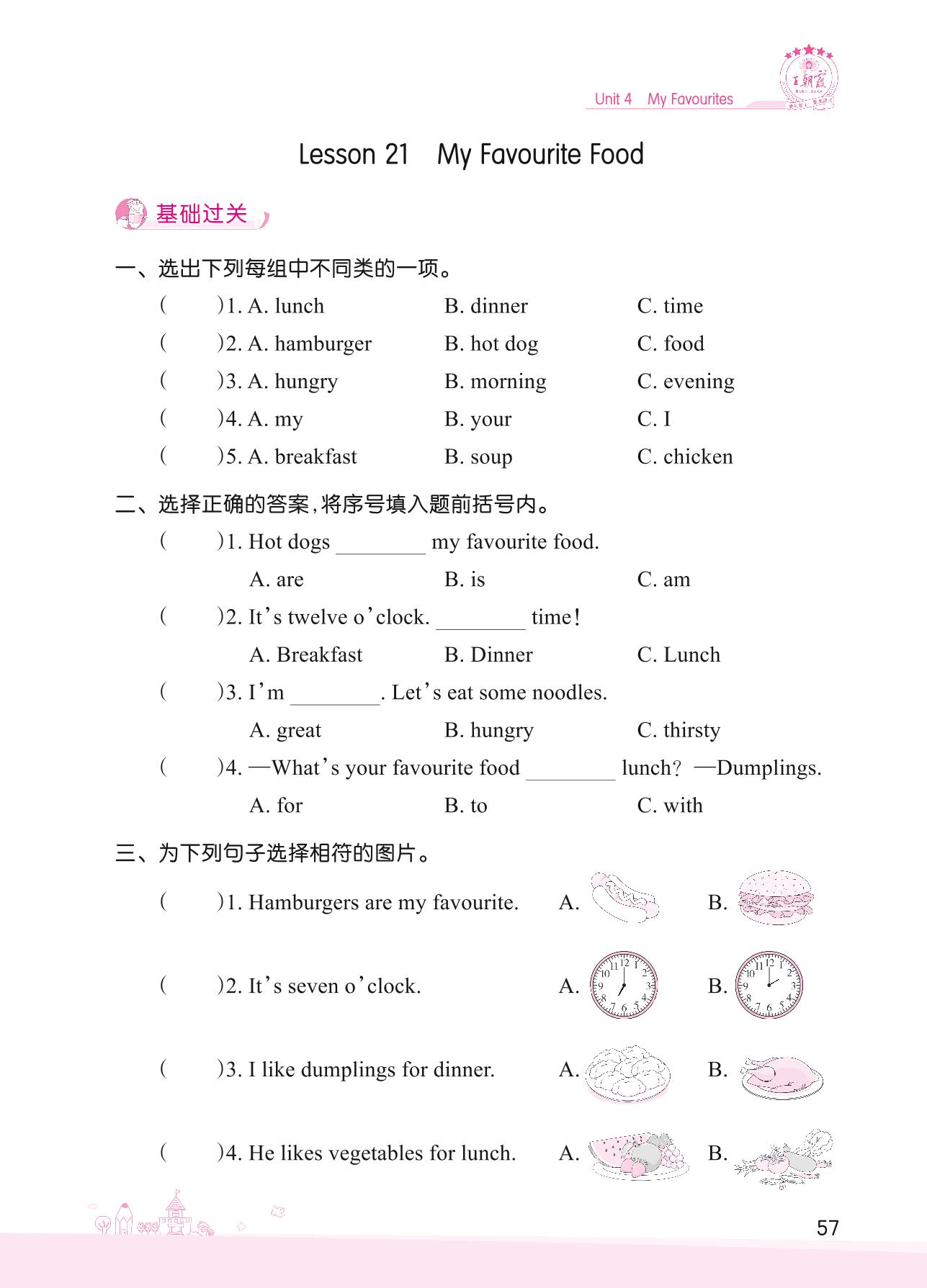 2022下册四年级英语冀教版 Unit 4—Lesson 21 My Favourite Food