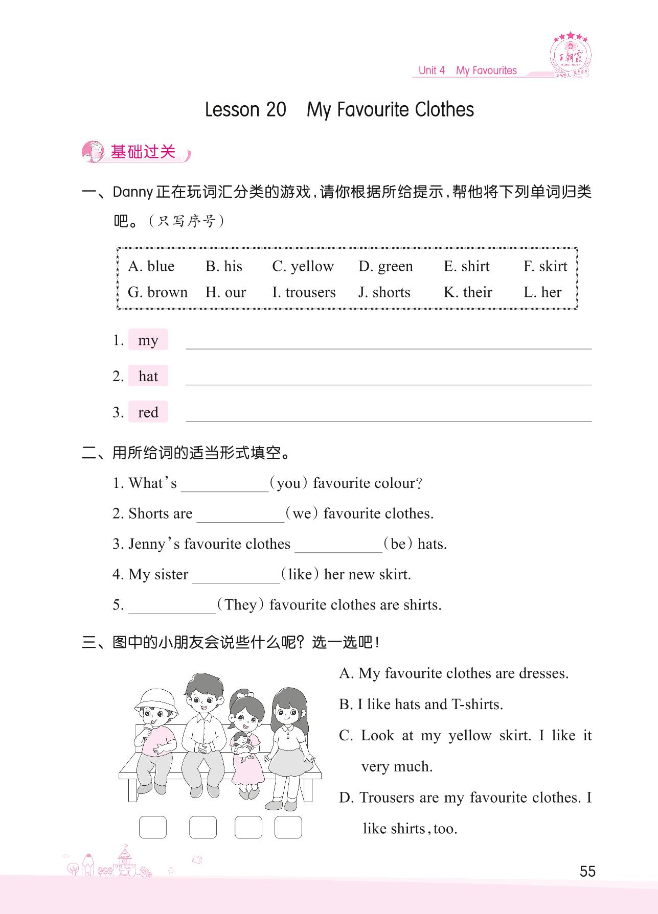 2022下册四年级英语冀教版 Unit 4—Lesson 20 My Favourite Clothes