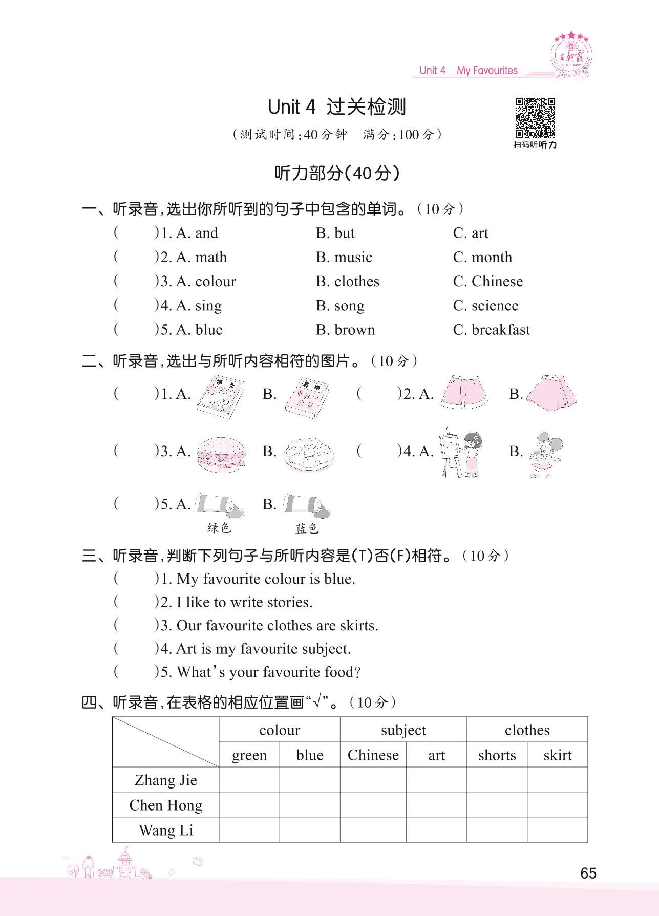 2022下册四年级英语冀教版 Unit 4 过关检测