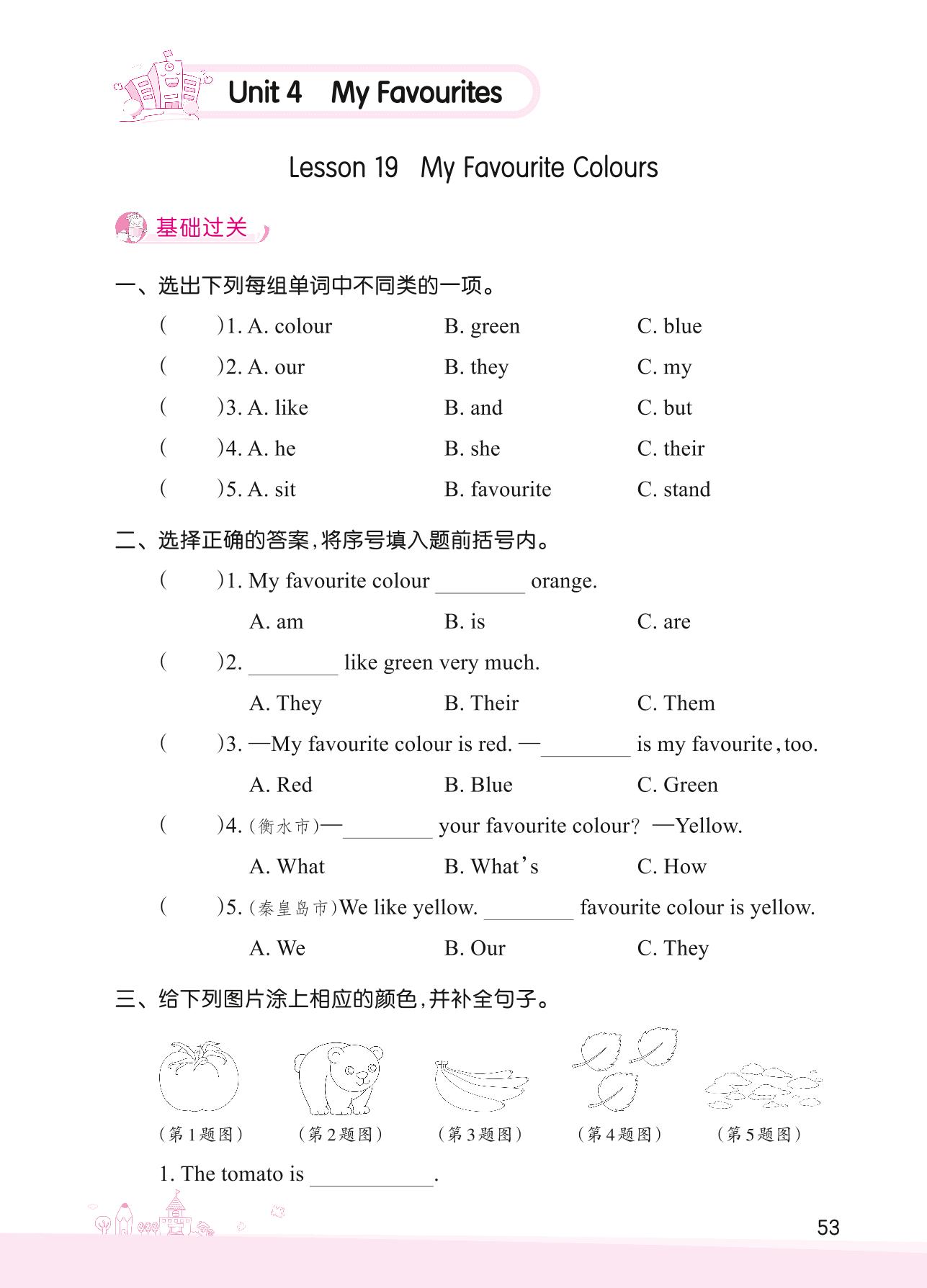 2022下册四年级英语冀教版 Unit 4—Lesson 19 My Favourite Colours