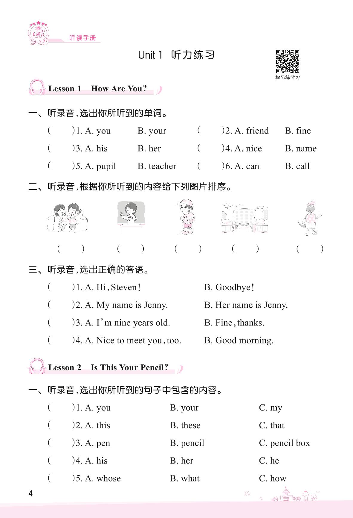 2022下册四年级英语冀教版 Unit 1 Hello Again!—Lesson 1-5听力练习