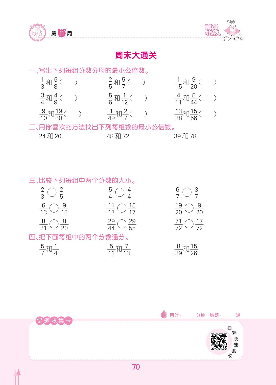 2022下册五年级数学人教版 第11周 周末大通关