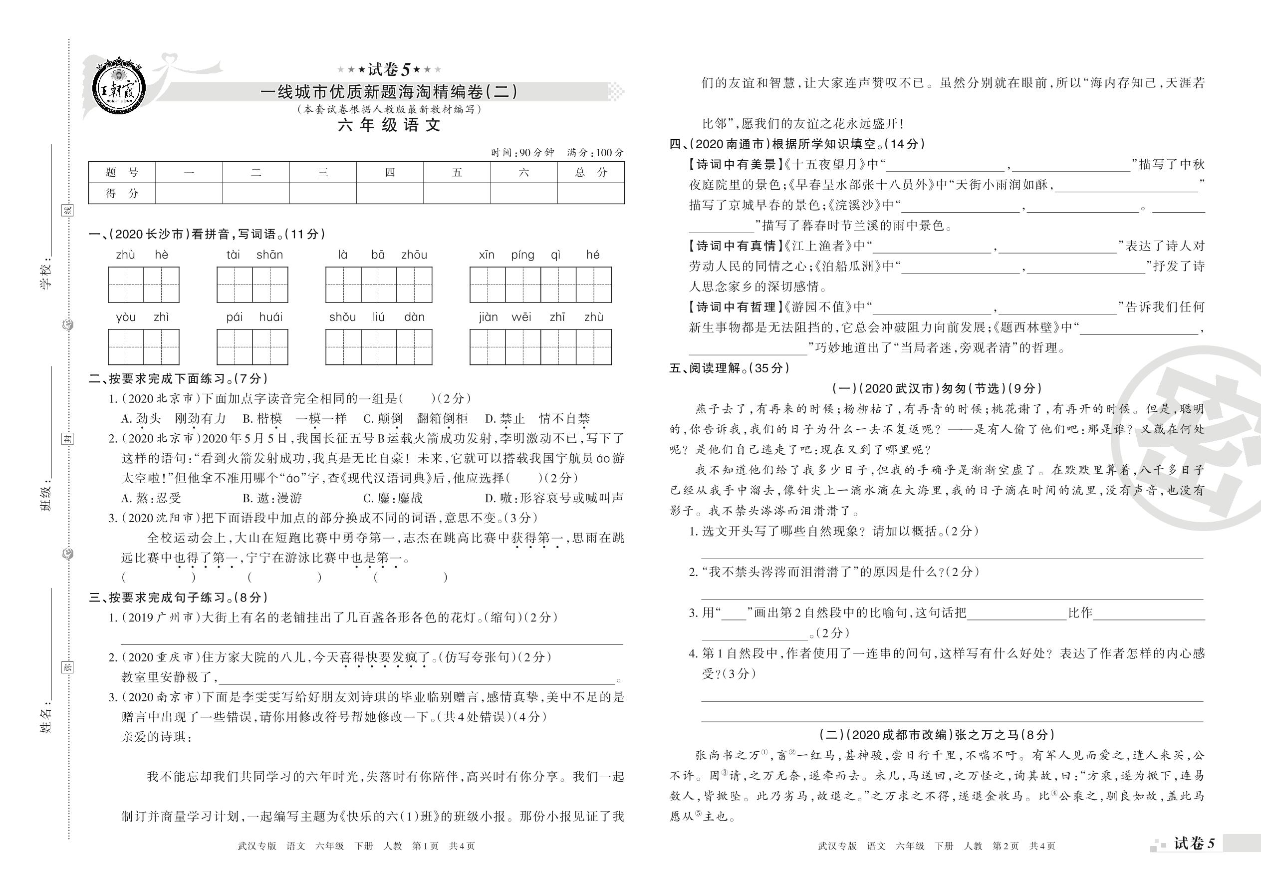 王朝霞海淘期末精编卷六年级下册语文(人教版)_R2108024039【5】