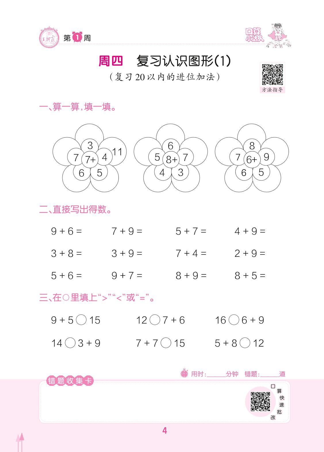 2022下册一年级数学人教版 第1周 周四