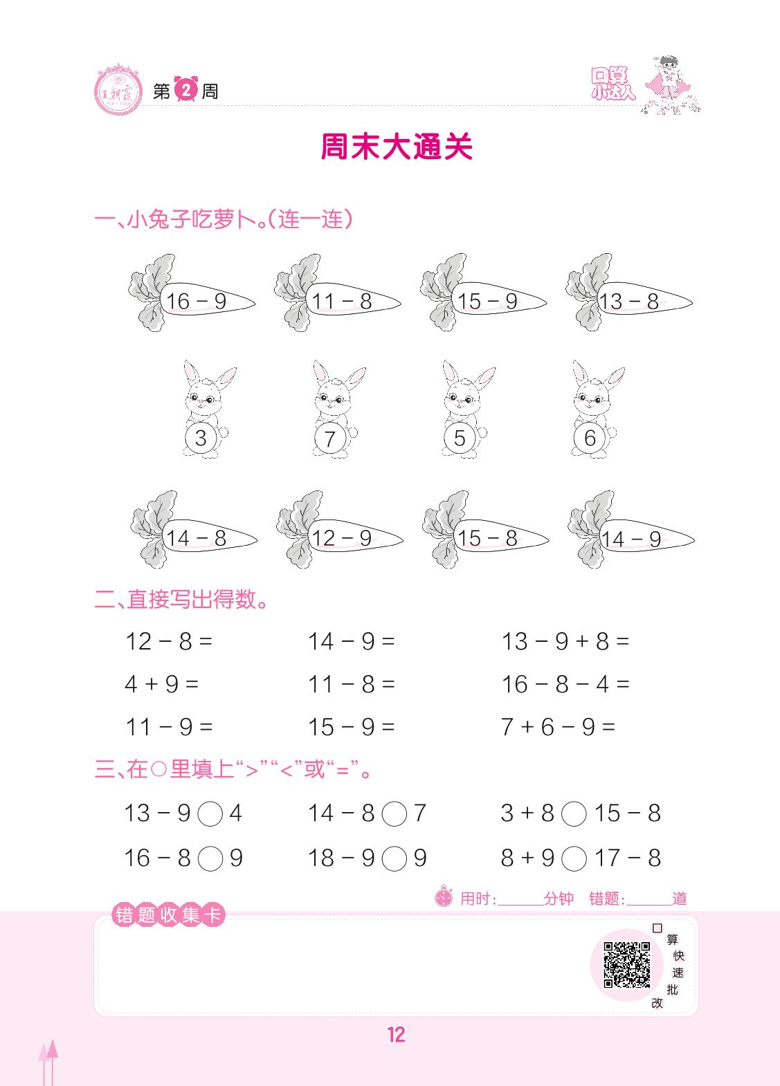 2022下册一年级数学人教版 第2周 周末大通关