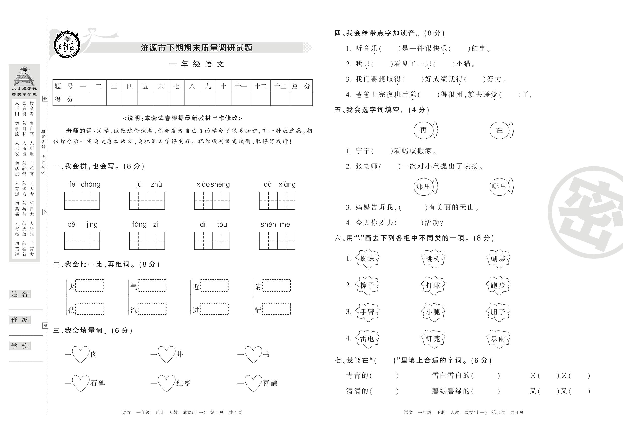 2015-2016学年第二学期济源市一年级语文试卷(人教版)【11】
