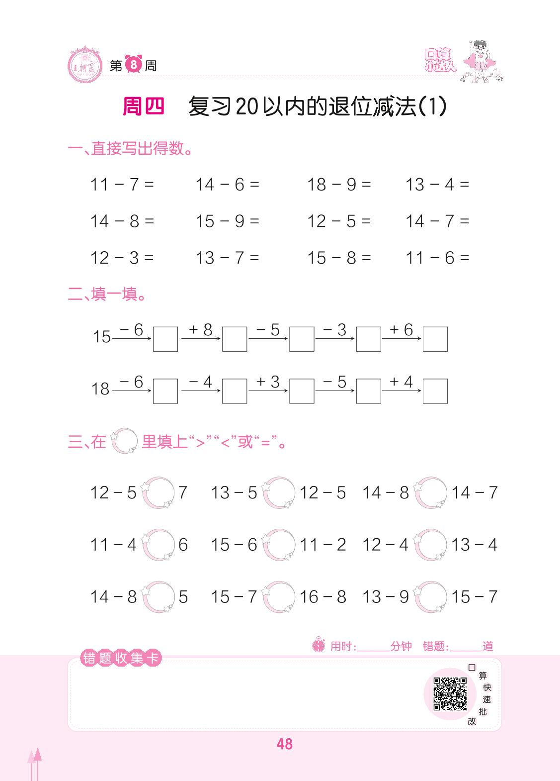 2022下册一年级数学人教版 第8周 周四