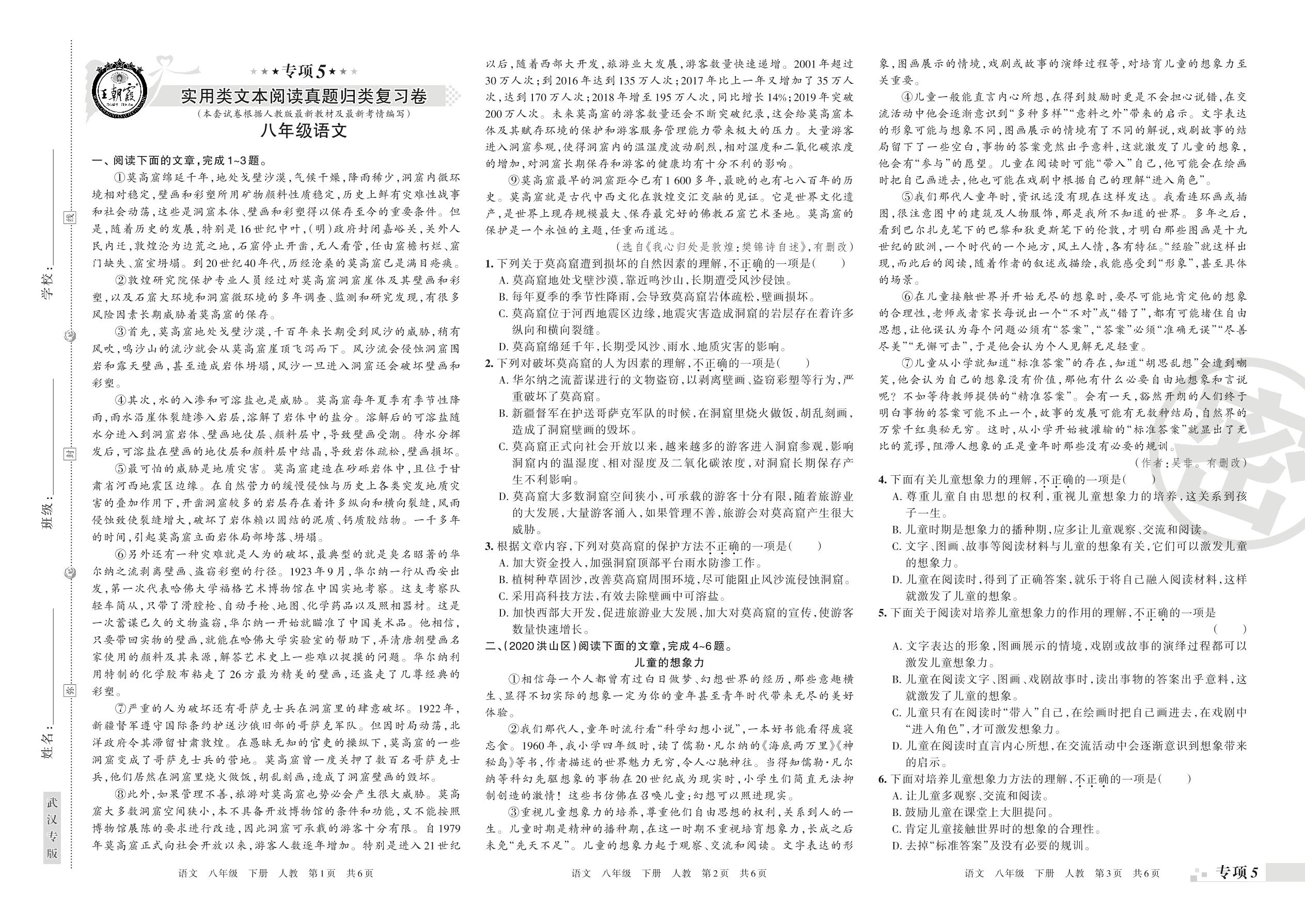 王朝霞期末专项卷——实用类文本阅读真题归类复习八年级下册语文(人教版)【0】