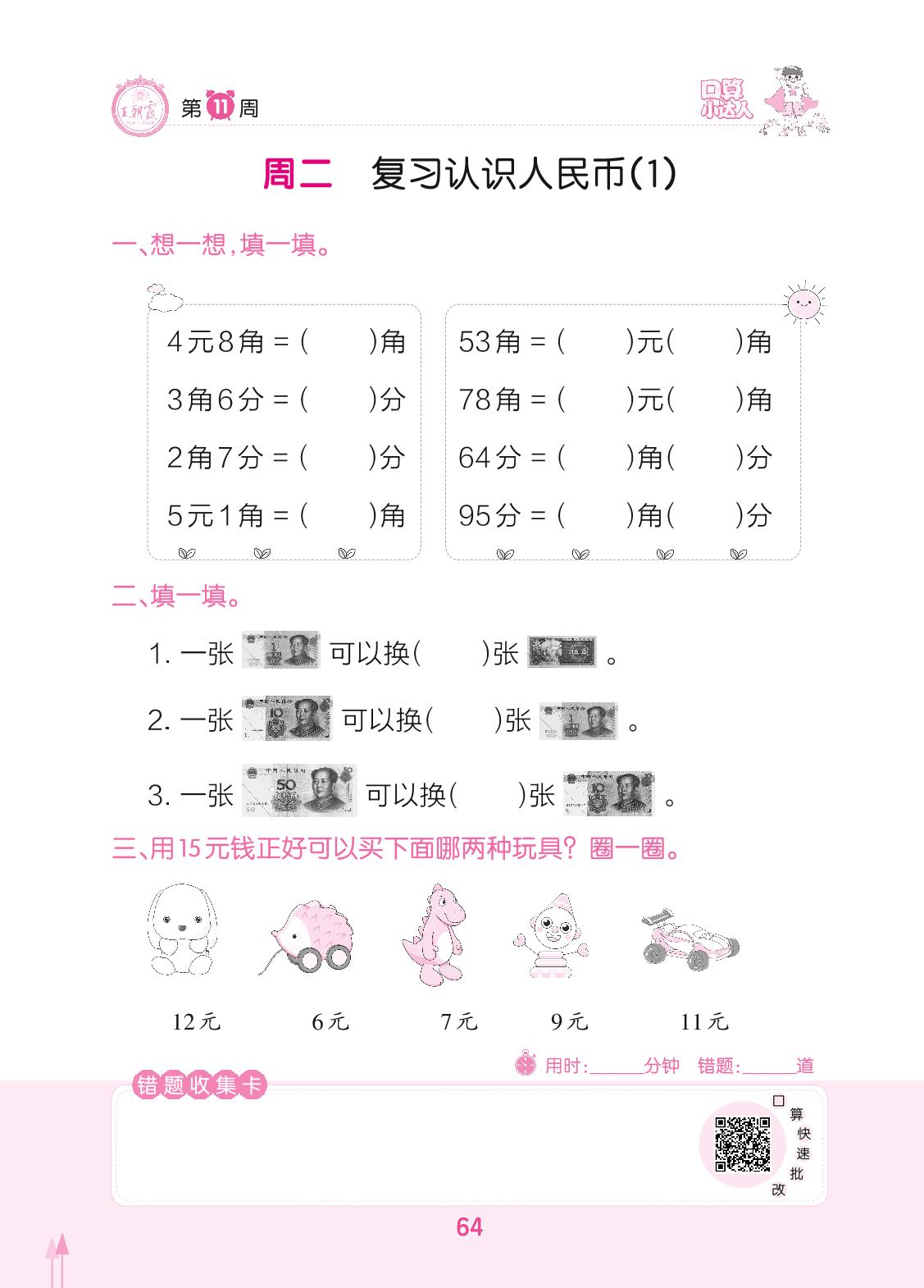 2022下册一年级数学人教版 第11周 周二