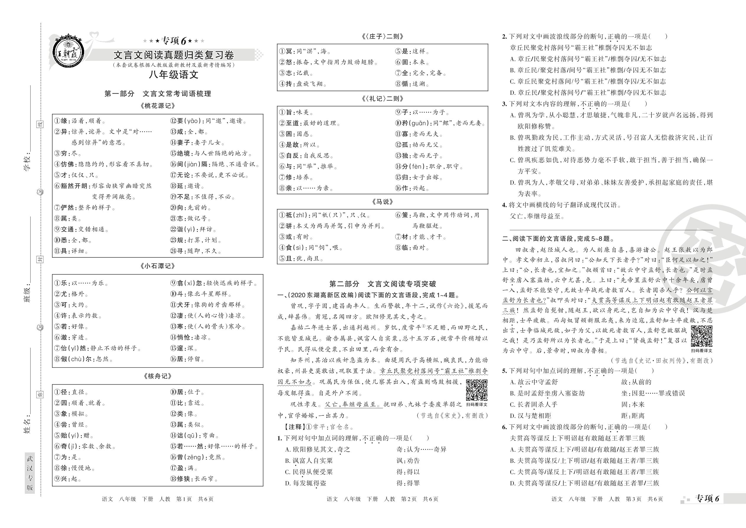 王朝霞期末专项卷——文言文阅读真题归类复习八年级下册语文(人教版)【0】