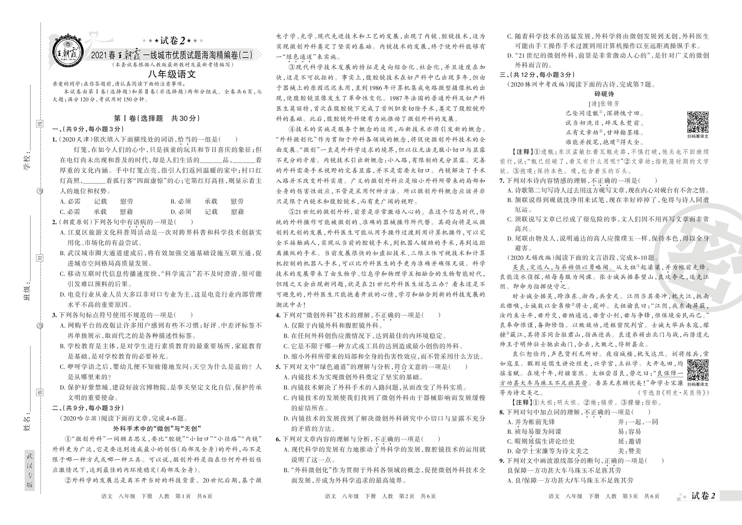 王朝霞海淘期末精编卷八年级下册语文(人教版)【2】