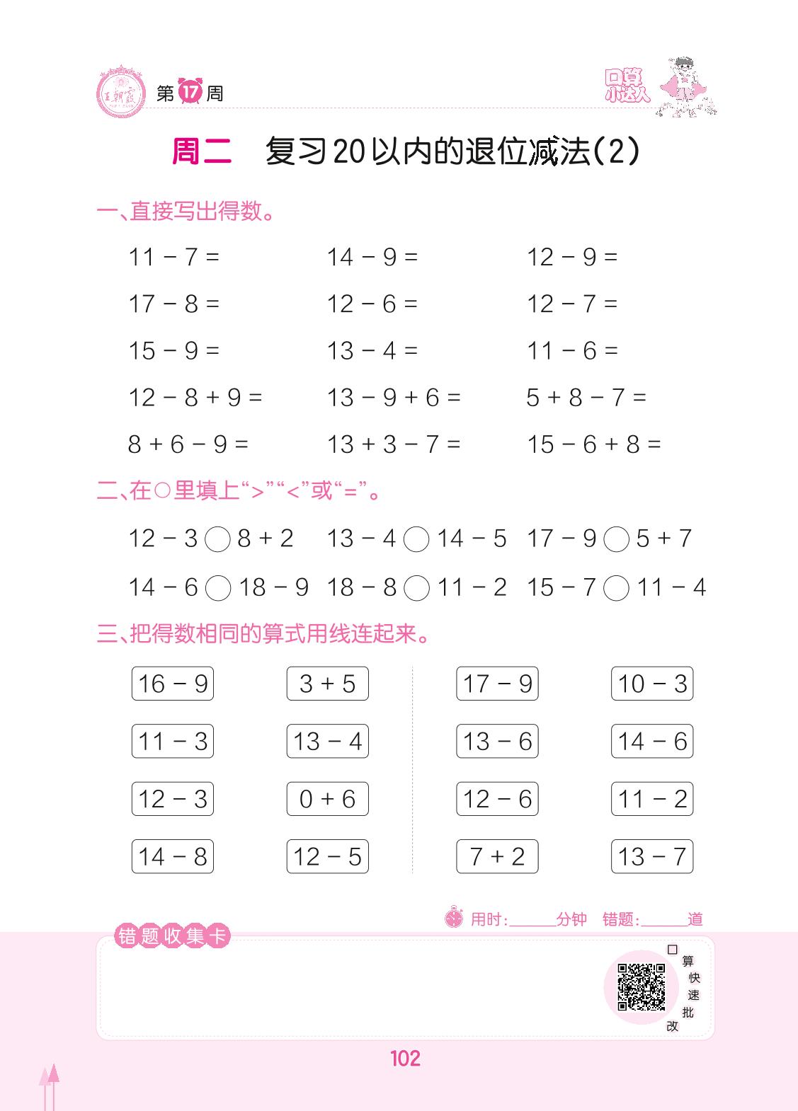 2022下册一年级数学人教版 第17周 周二