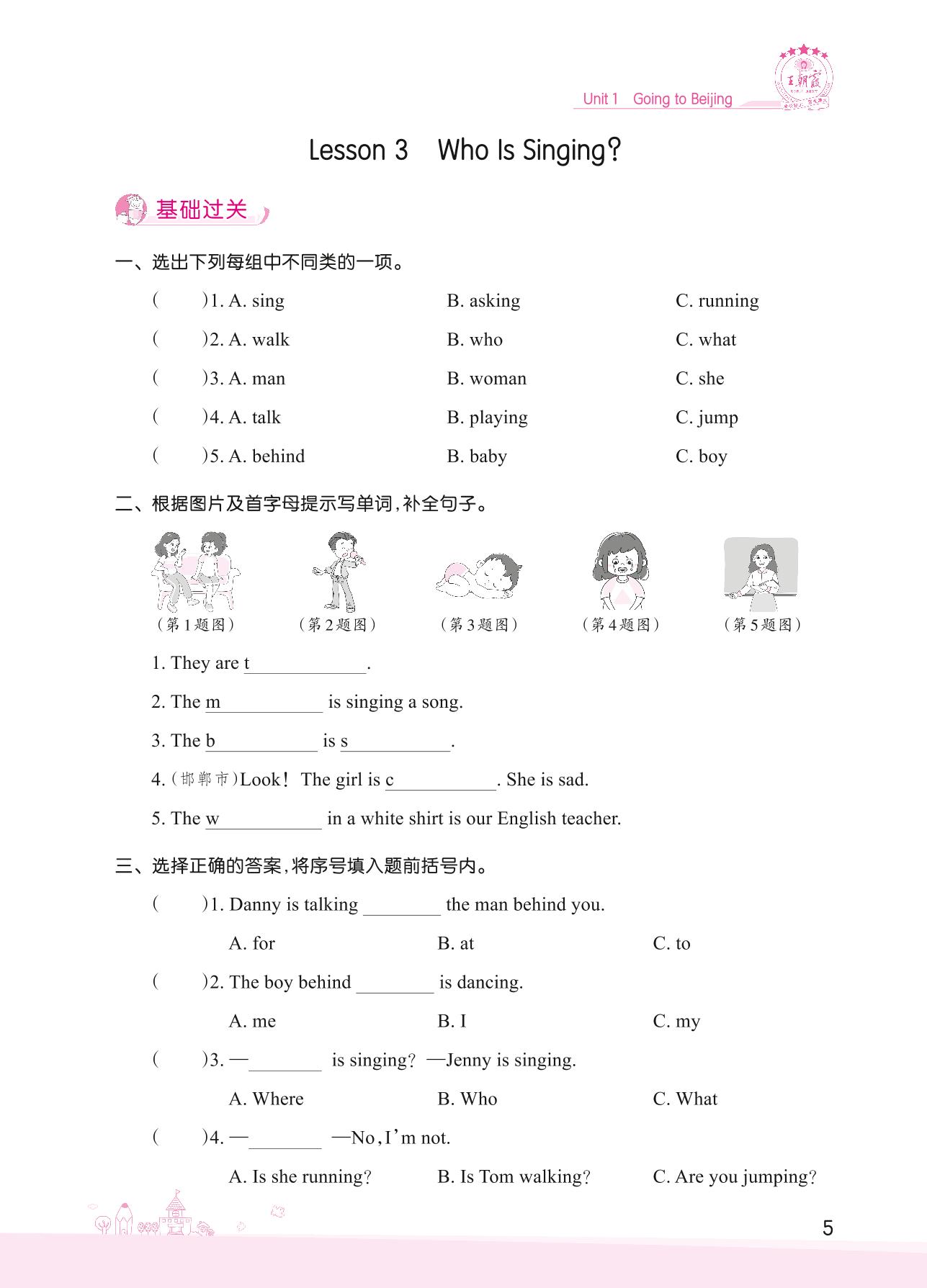 2022下册五年级英语冀教版 Unit 1—Lesson 3 Who Is Singing?