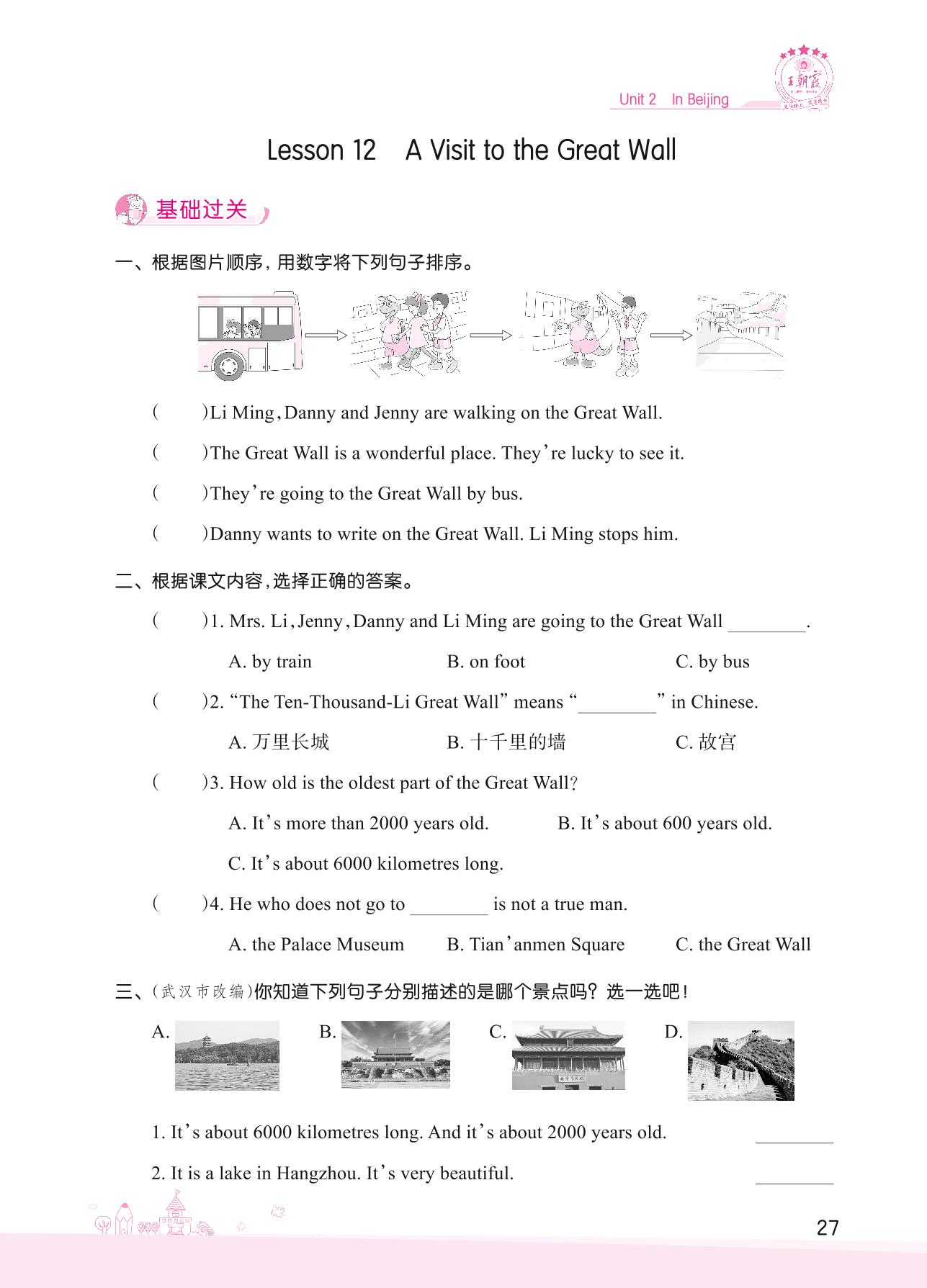 2022下册五年级英语冀教版 Unit 2—Lesson 12 A Visit to the Great Wall