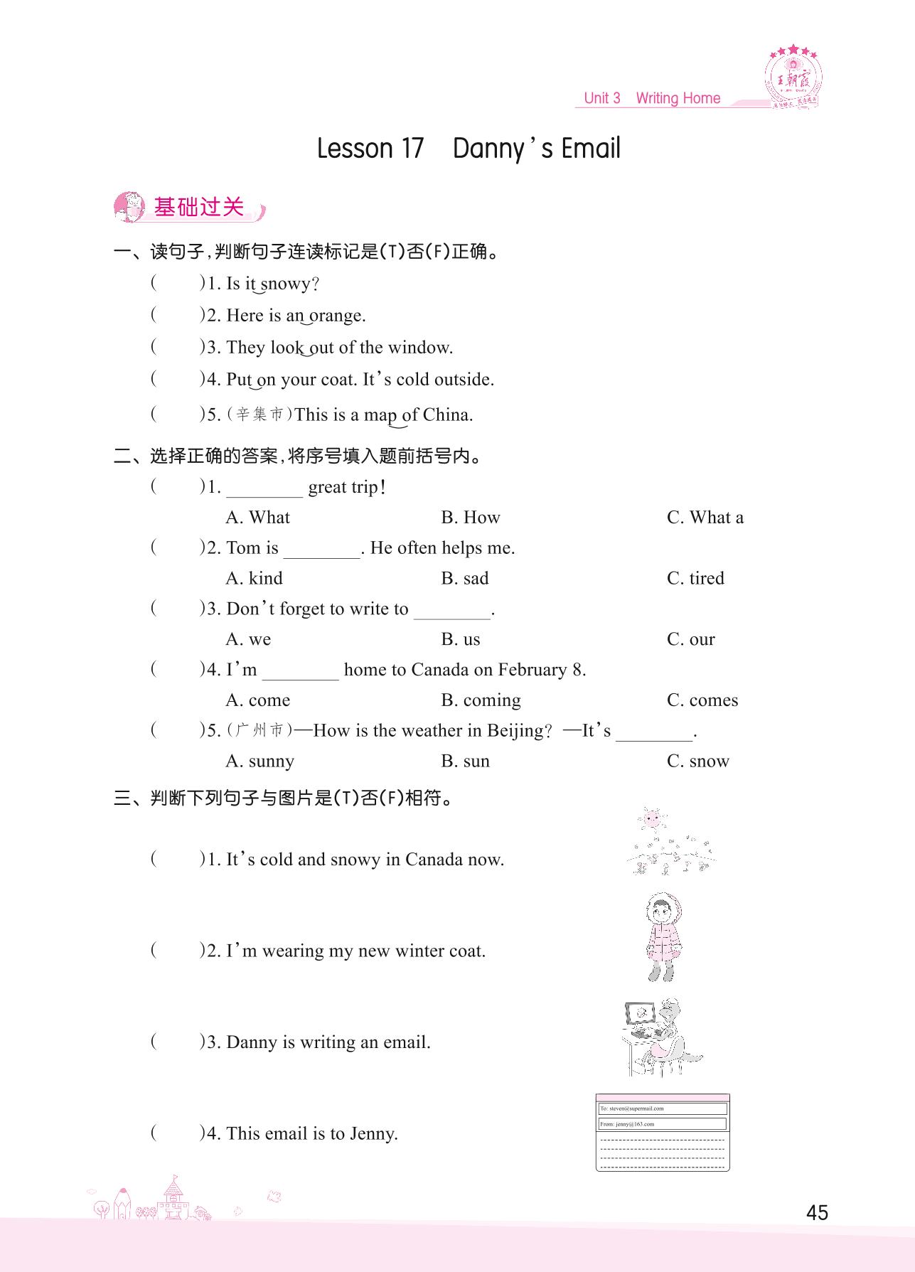 2022下册五年级英语冀教版 Unit 3—Lesson 17 Danny’s Email