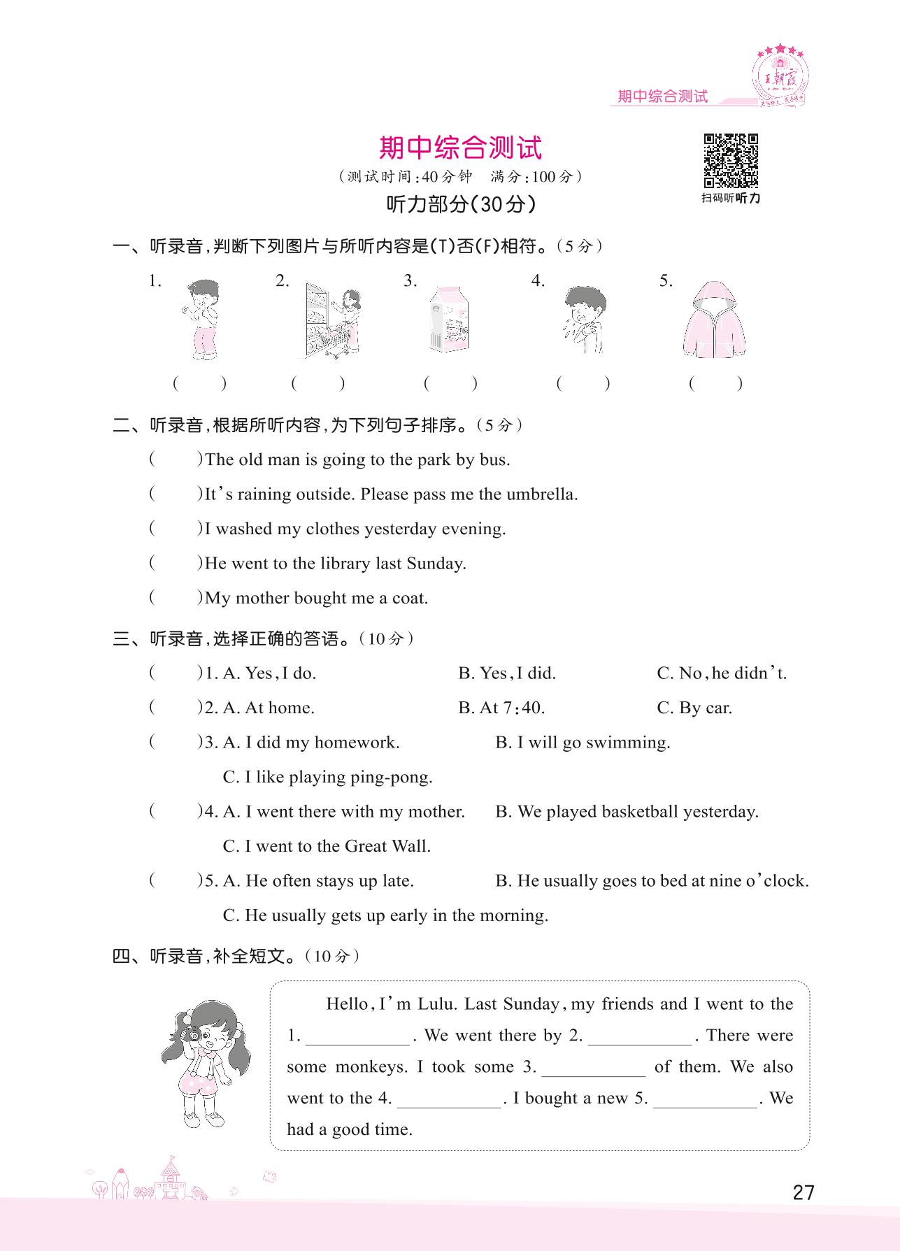 2022下册六年级英语科普版 期中综合测试