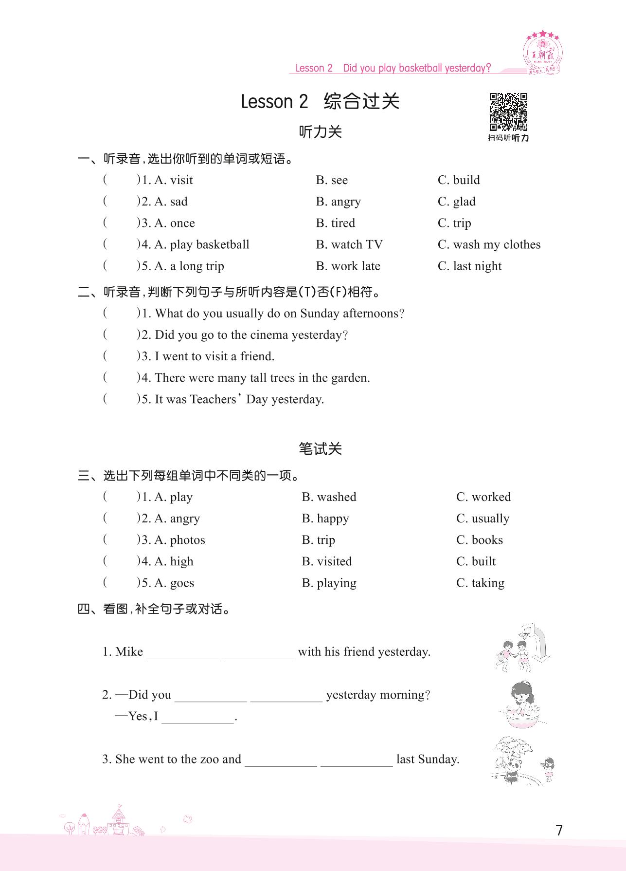 2022下册六年级英语科普版 Lesson 2 综合过关