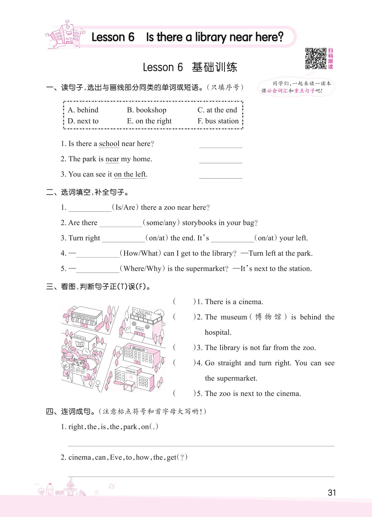 2022下册六年级英语科普版 Lesson 6 基础训练