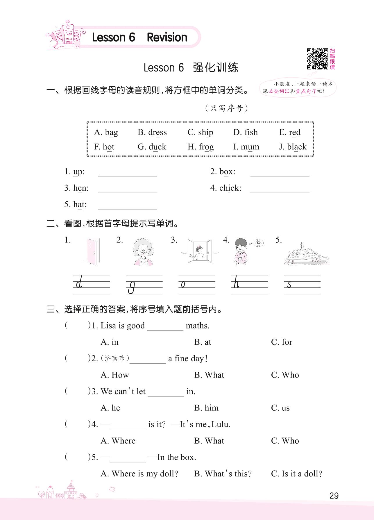 2022下册三年级英语科普版 Lesson 6 强化训练
