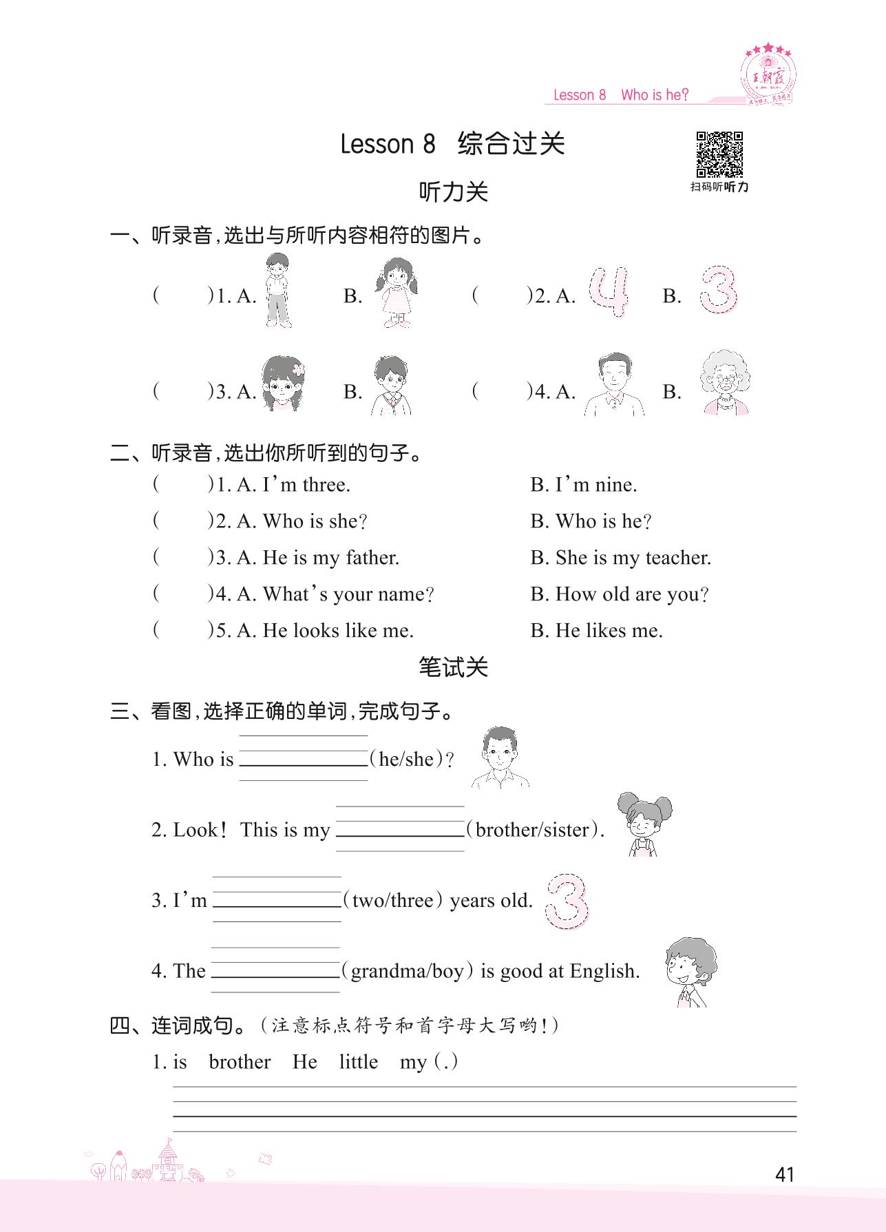 2022下册三年级英语科普版 Lesson 8 综合过关