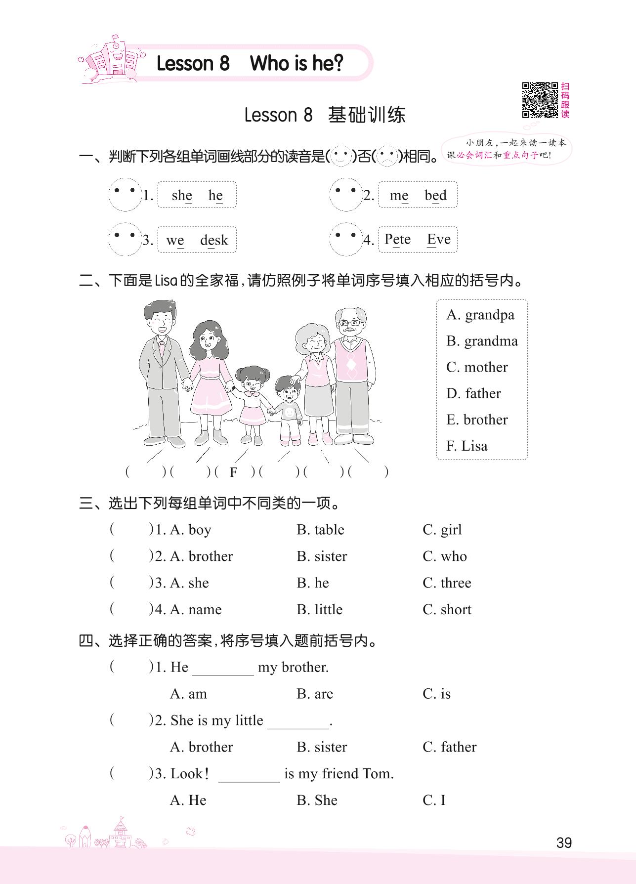 2022下册三年级英语科普版 Lesson 8 基础训练