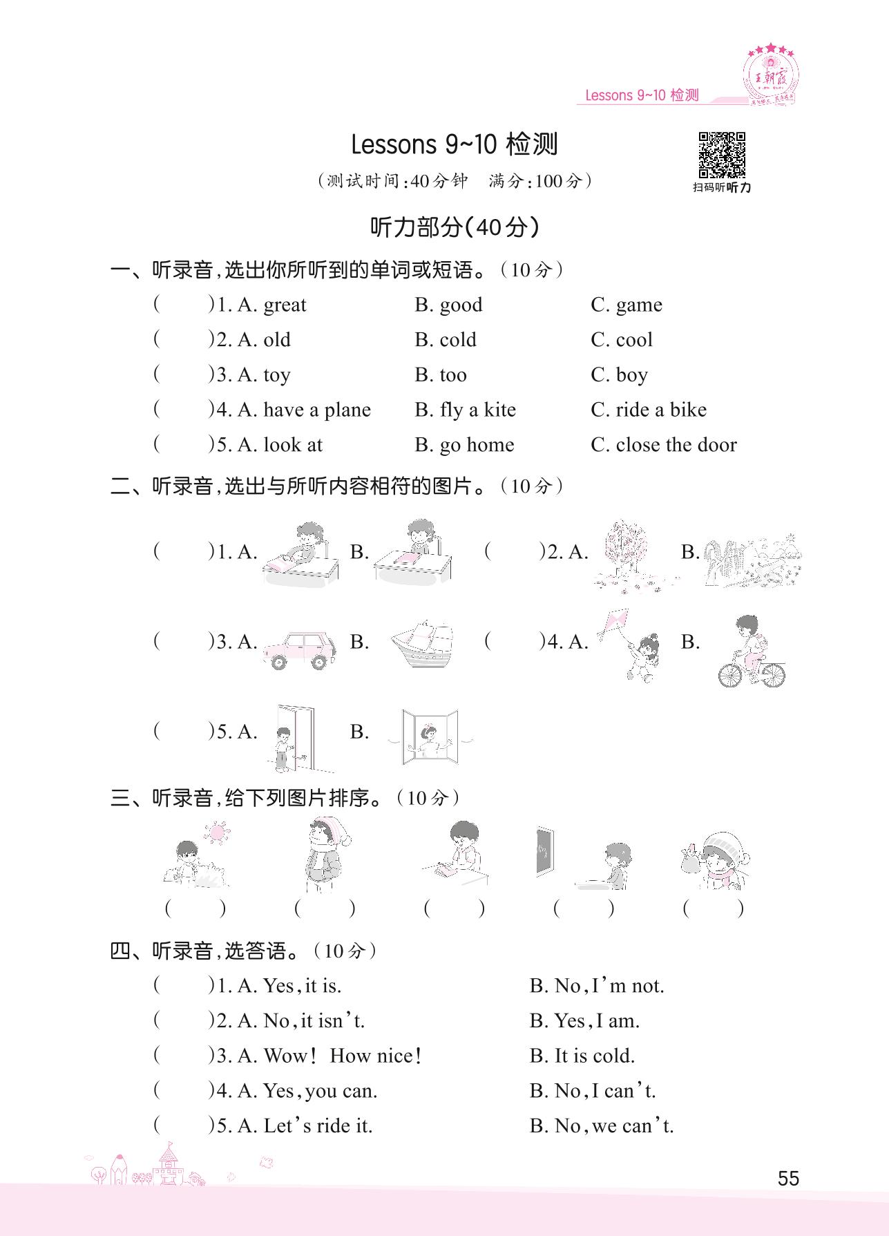 2022下册三年级英语科普版 Lessons 9~10 检测
