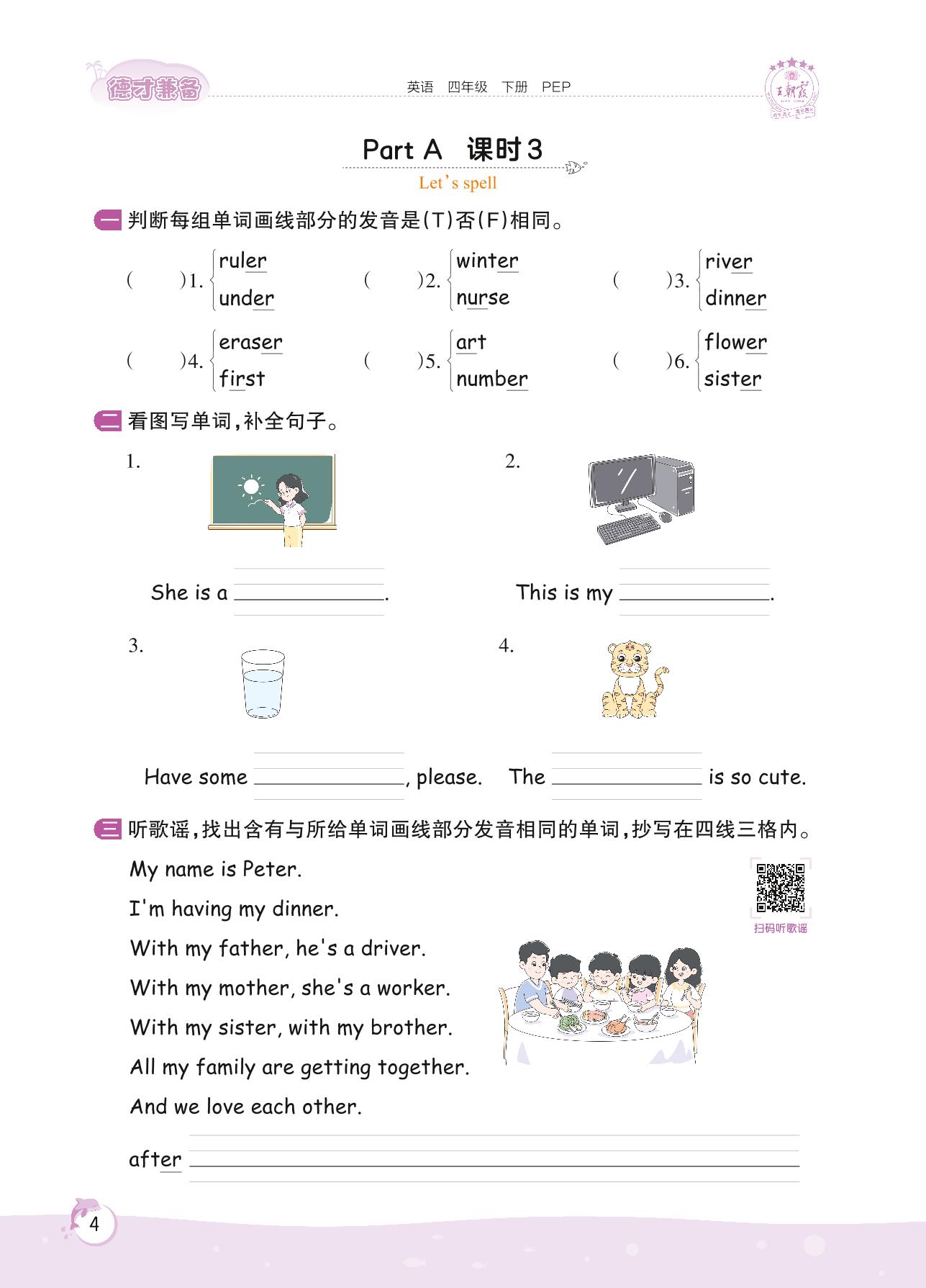 2022下册四年级英语人教PEP版 Unit 1 Part A—课时 3 Let’s spell