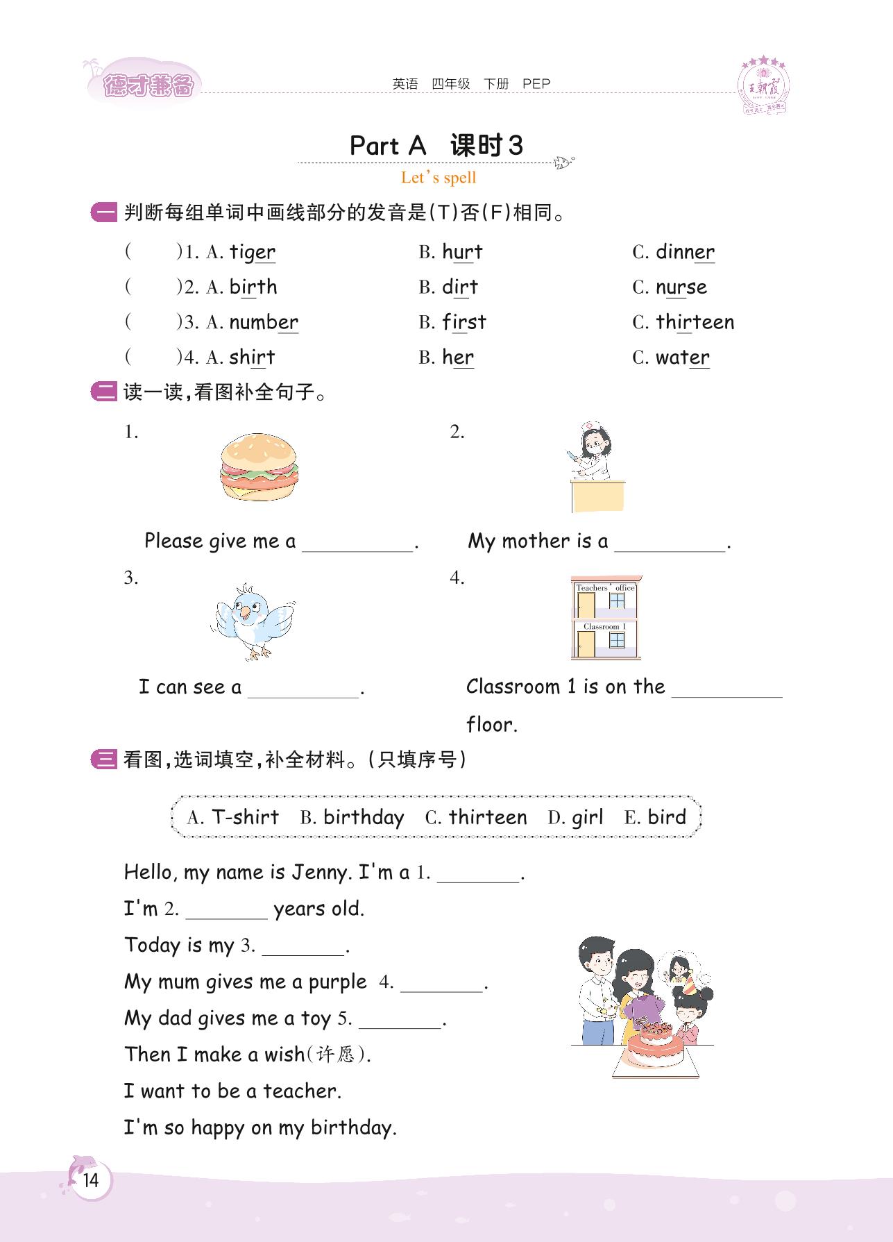 2022下册四年级英语人教PEP版 Unit 2 Part A—课时 3 Let’s spell