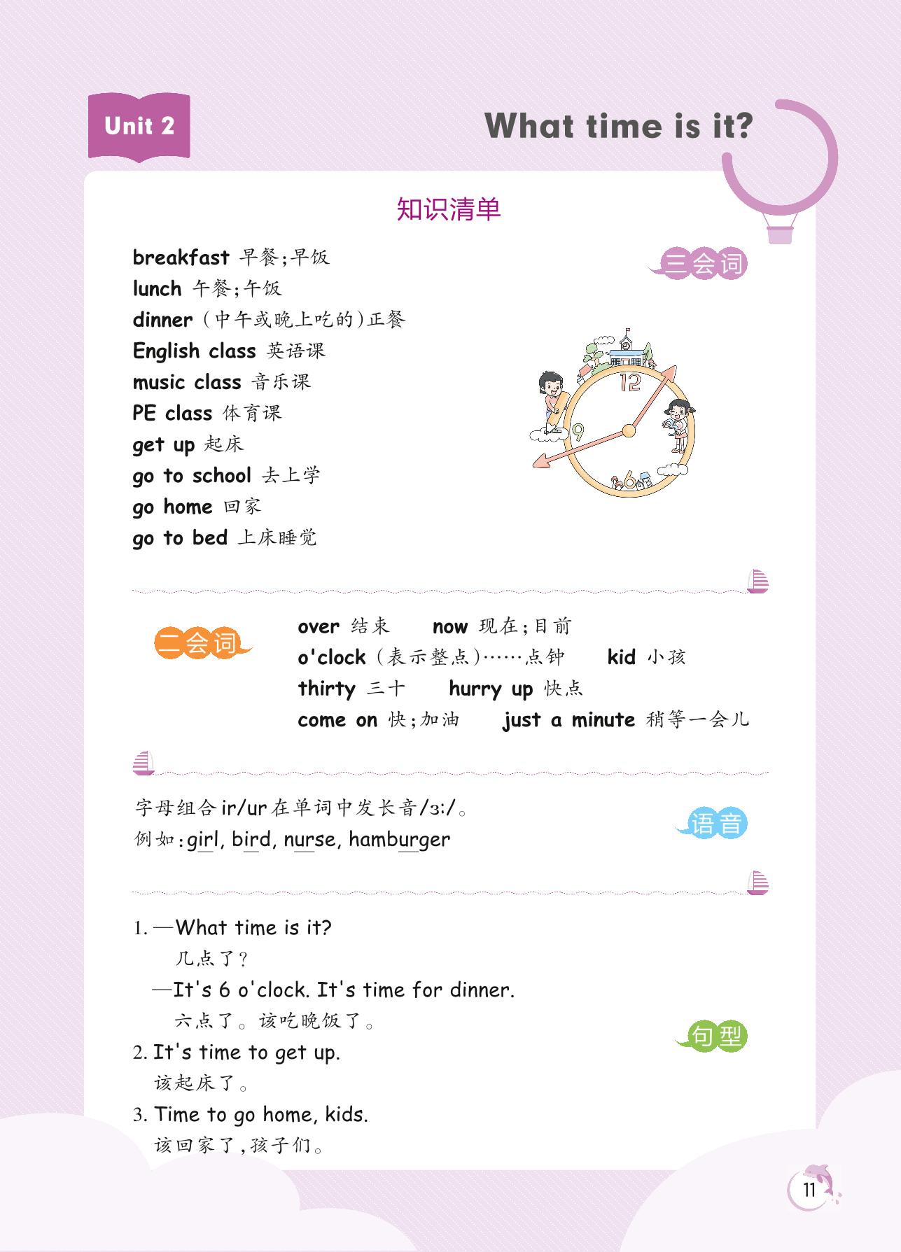 2022下册四年级英语人教PEP版 Unit 2 知识清单