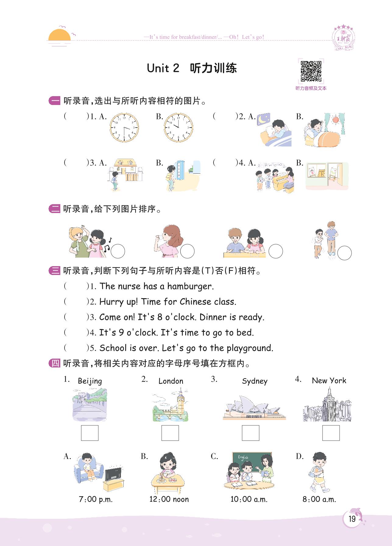 2022下册四年级英语人教PEP版 Unit 2 听力训练
