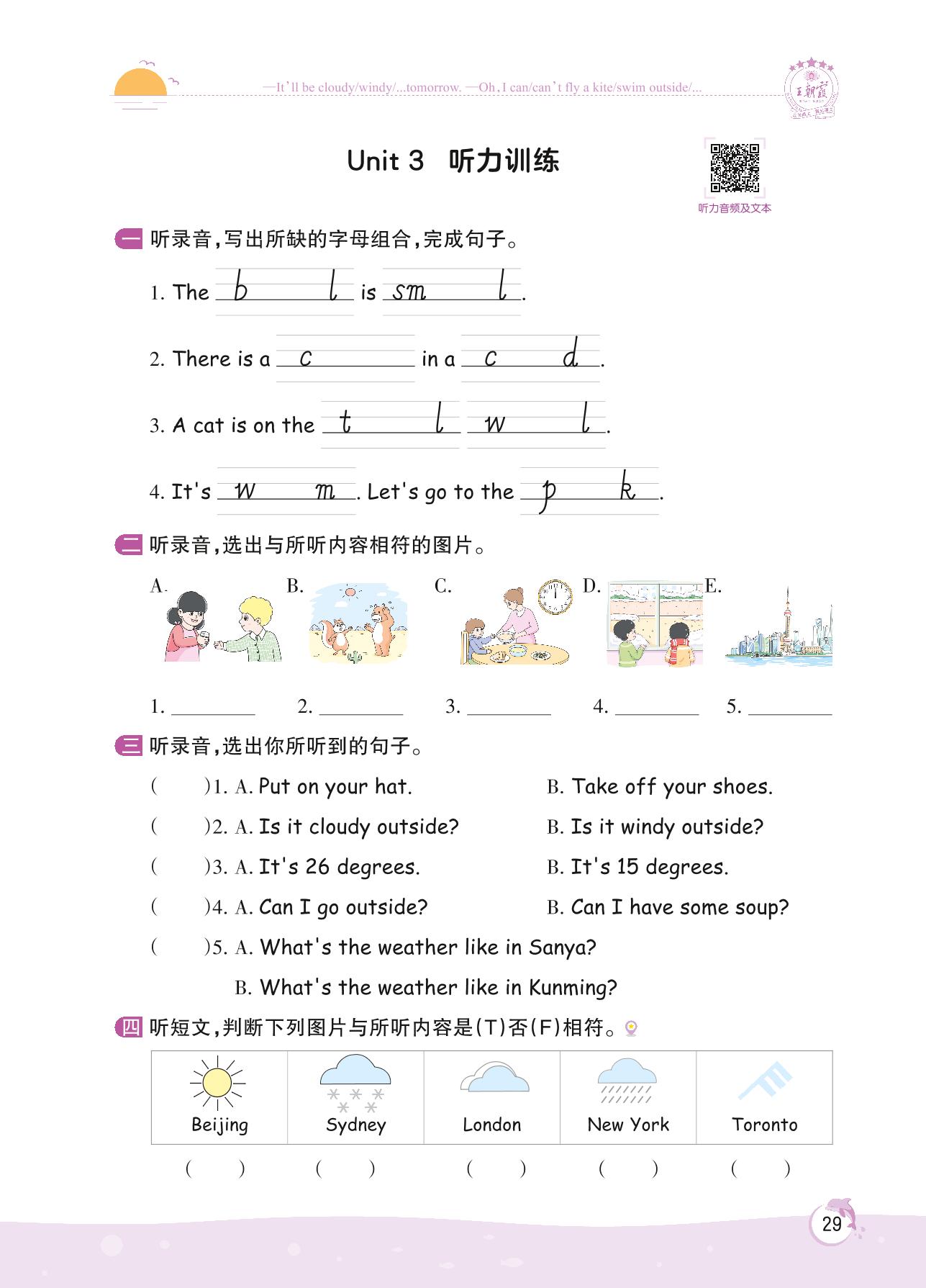 2022下册四年级英语人教PEP版 Unit 3 听力训练