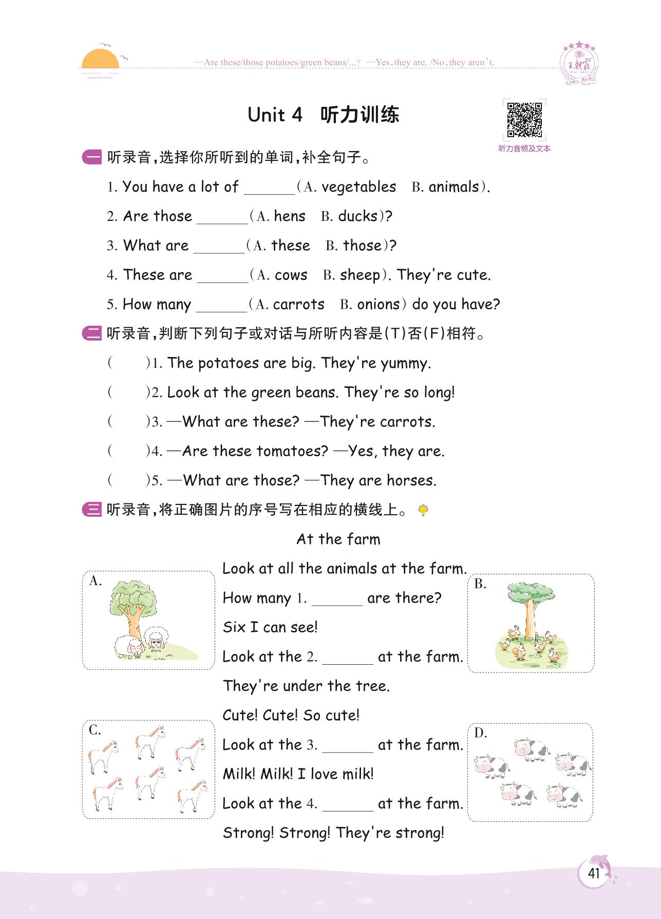 2022下册四年级英语人教PEP版 Unit 4 听力训练