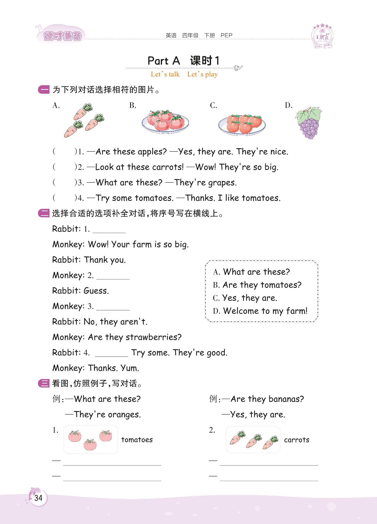 2022下册四年级英语人教PEP版 Unit 4 Part A—课时 1 Let’s talk Let’s play