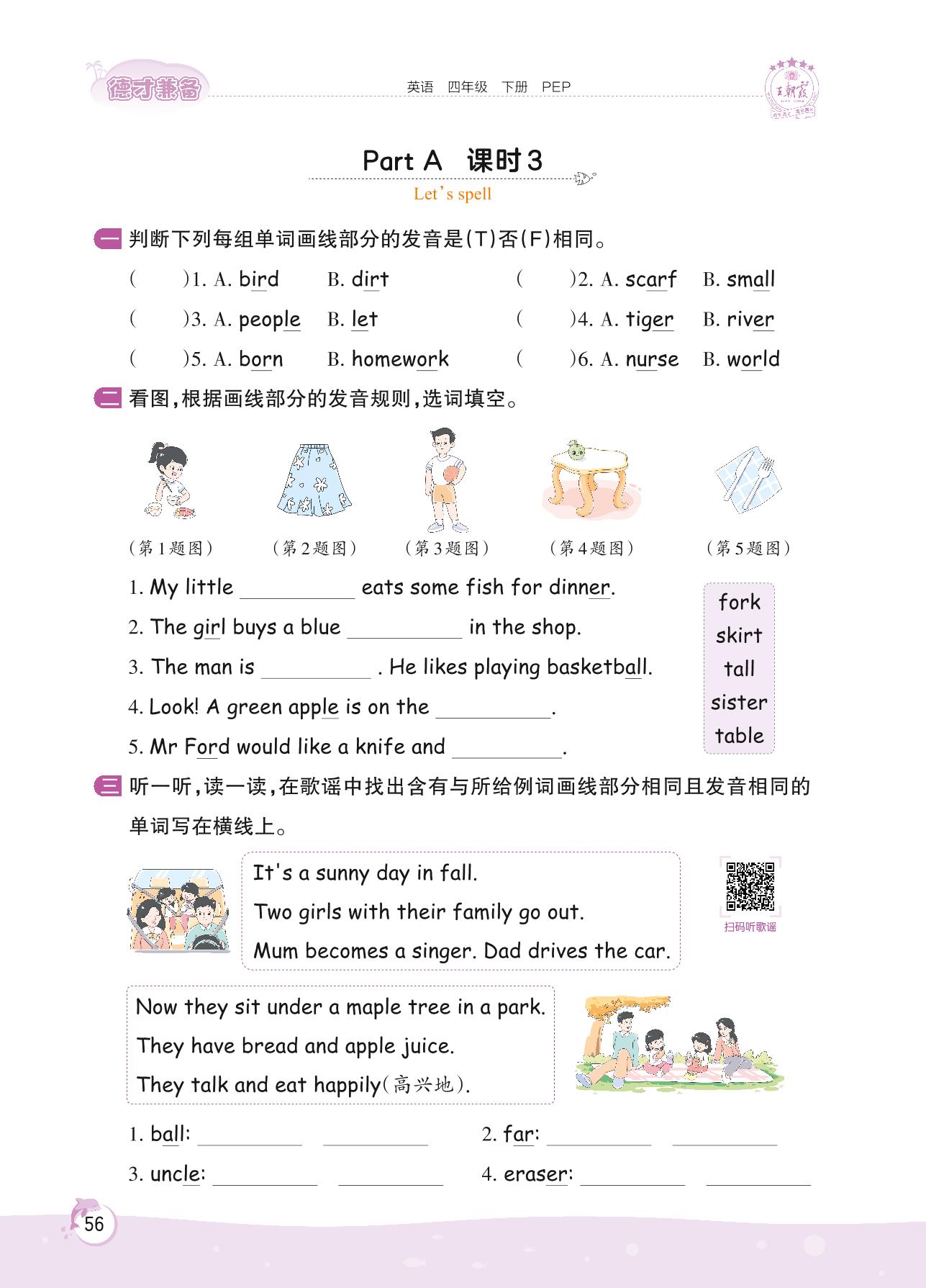 2022下册四年级英语人教PEP版 Unit 6 Part A—课时 3 Let’s spell