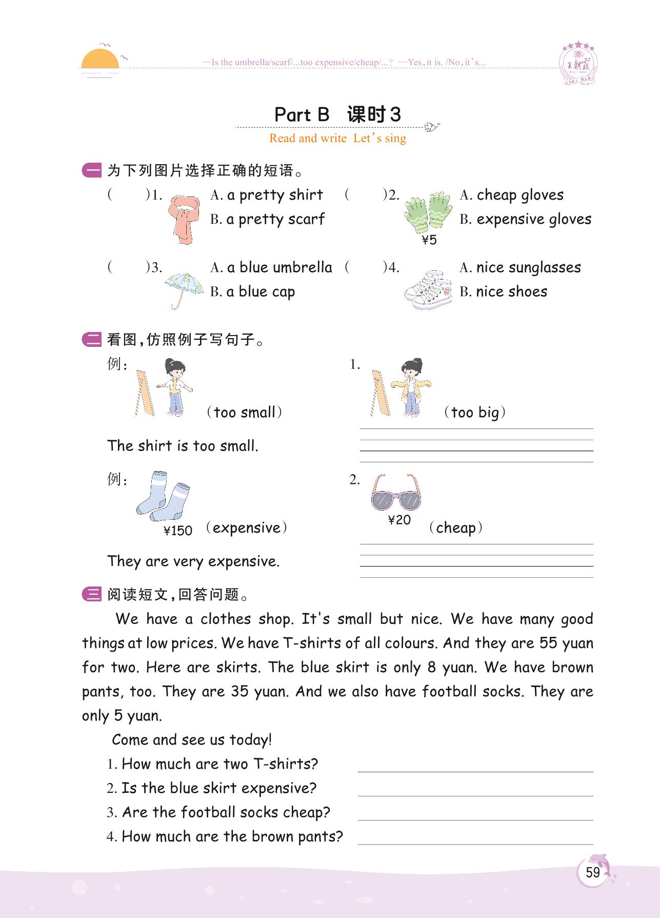 2022下册四年级英语人教PEP版 Unit 6 Part B课时 3 Read and write Let’s sing