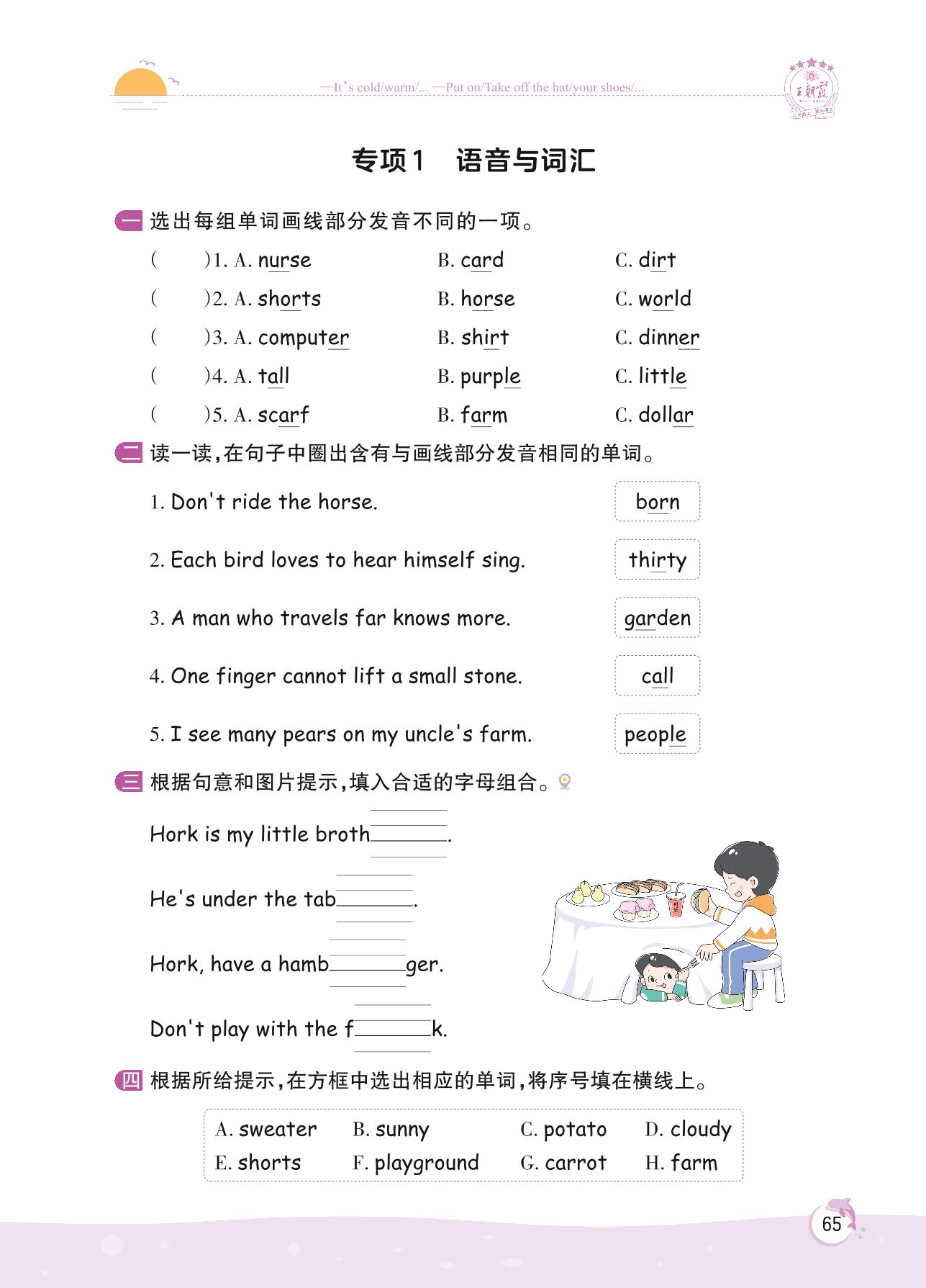 2022下册四年级英语人教PEP版 专项 1 语音与词汇